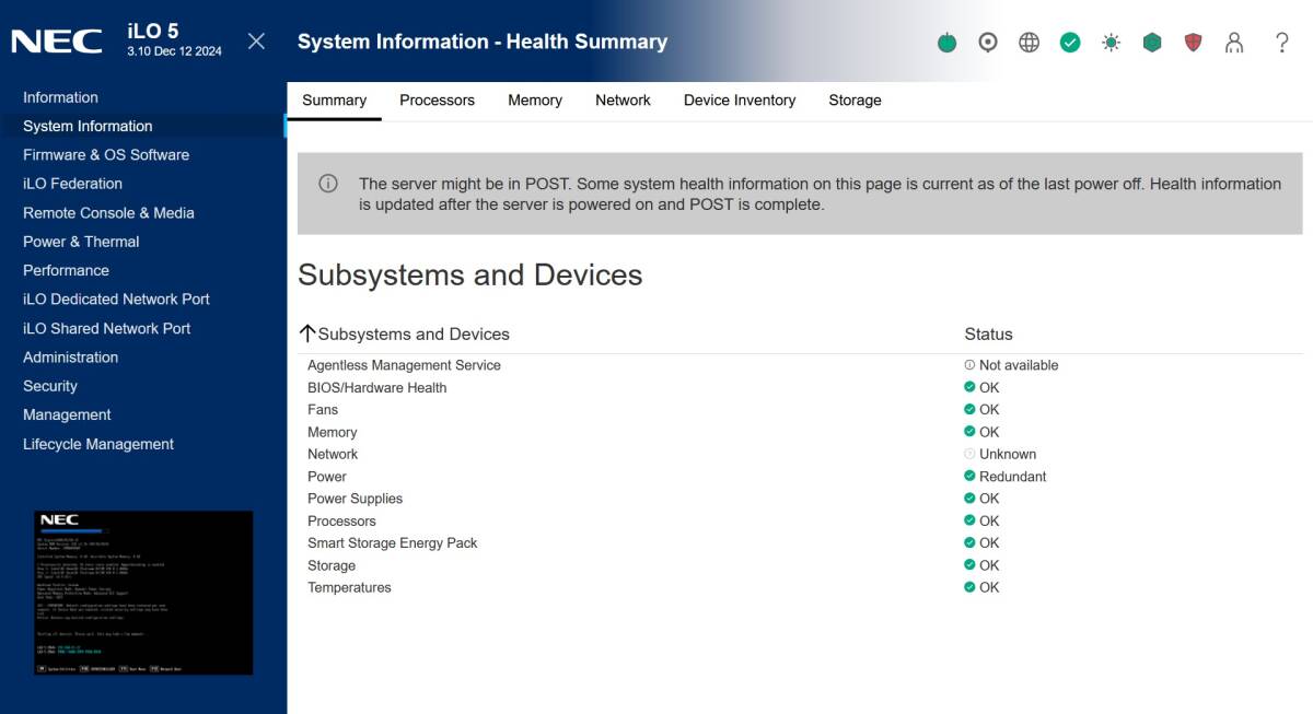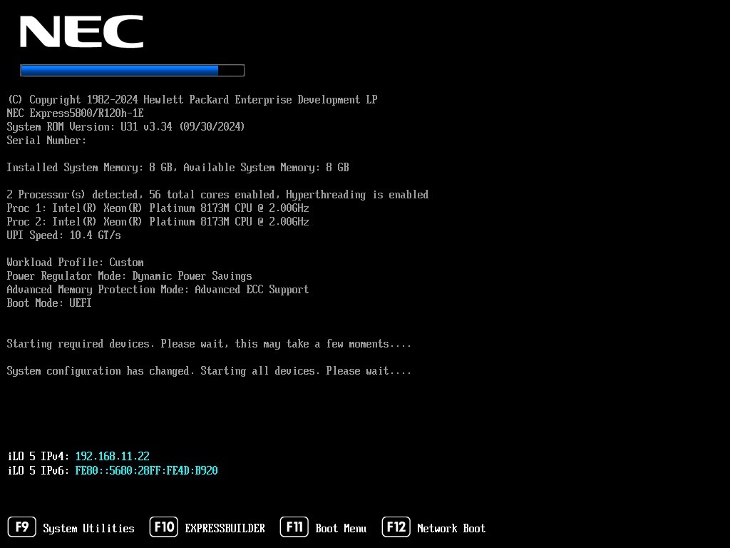 また、NEC向けOEM品のためブート画面やiLOのデザインがNEC仕様となっております。機能・性能や部品互換性はDL160 Gen10と同一です。