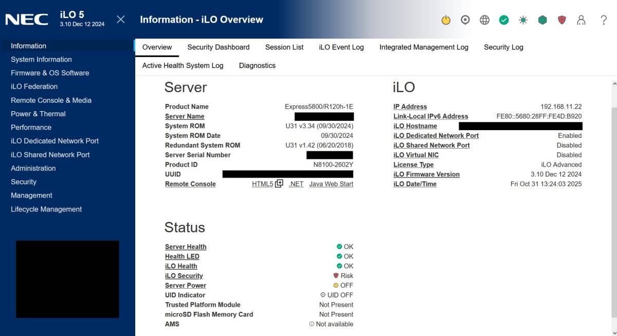- BIOS・iLOファームウェア等最新にアップデート済み