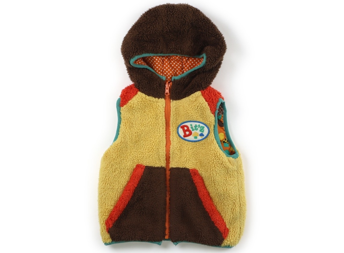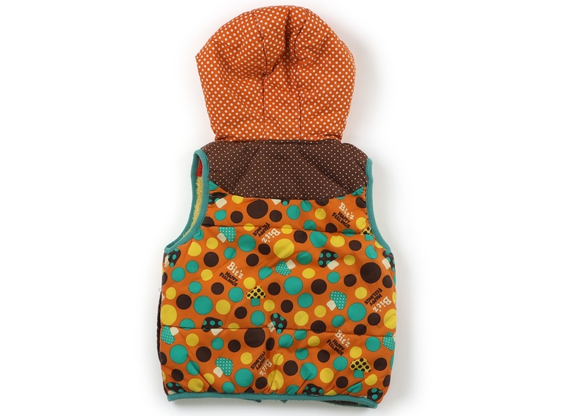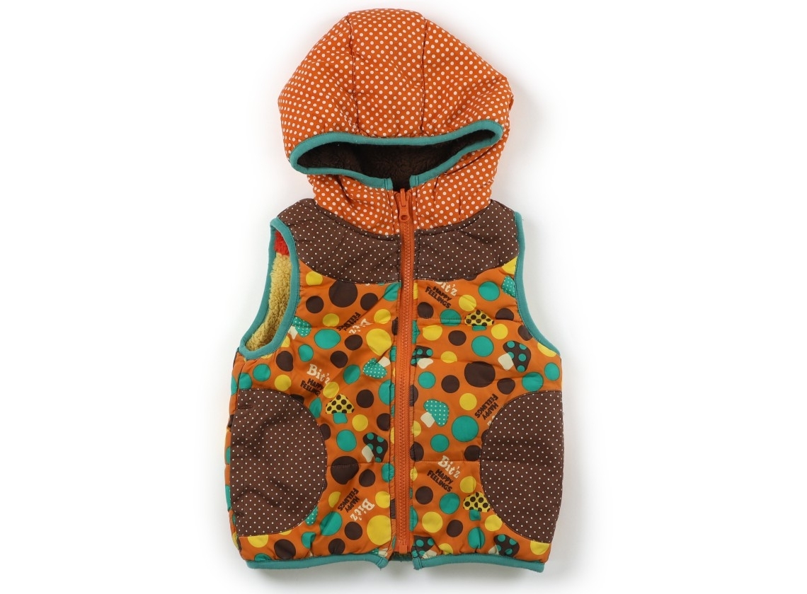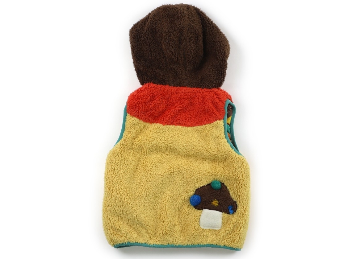 ポリエステル素材。中綿入り。裏地はボア素材。フードは縫い付けです。リバーシブル仕様。ボアに毛羽立ちあり。パイピングに毛玉感あり。薄い汚れがいくつか見られ、洗いざらし感があります。