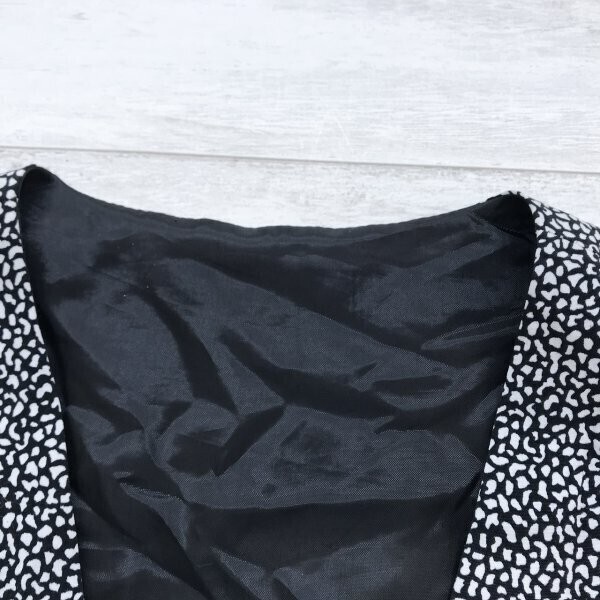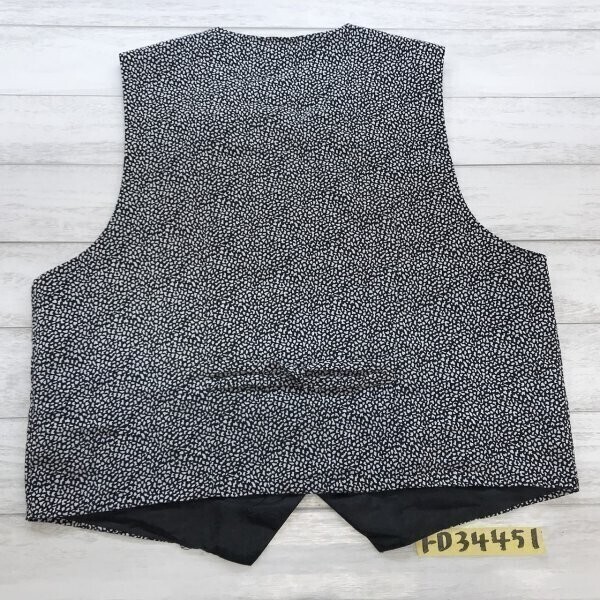 レディース 裏地付き 総柄 ボタンベスト ジレ 黒白 です。