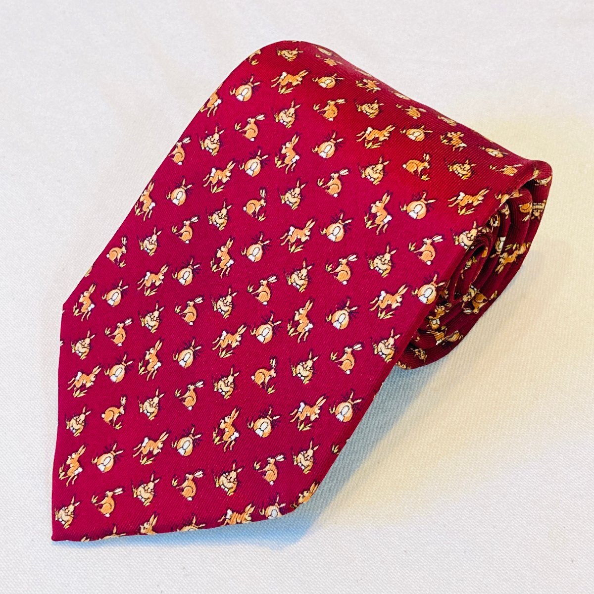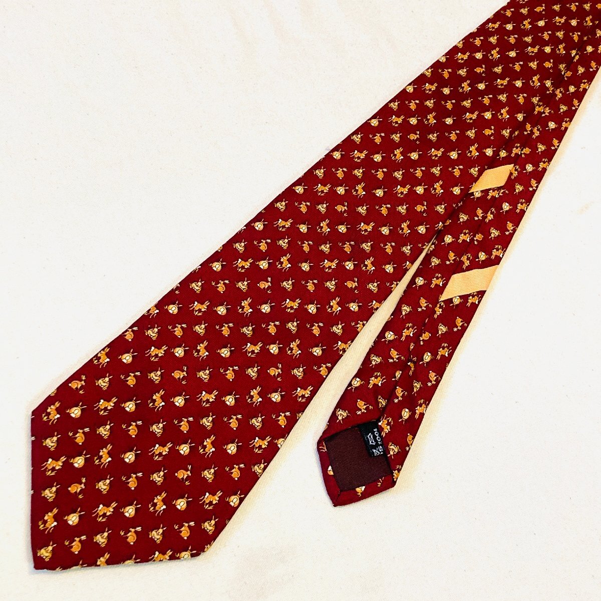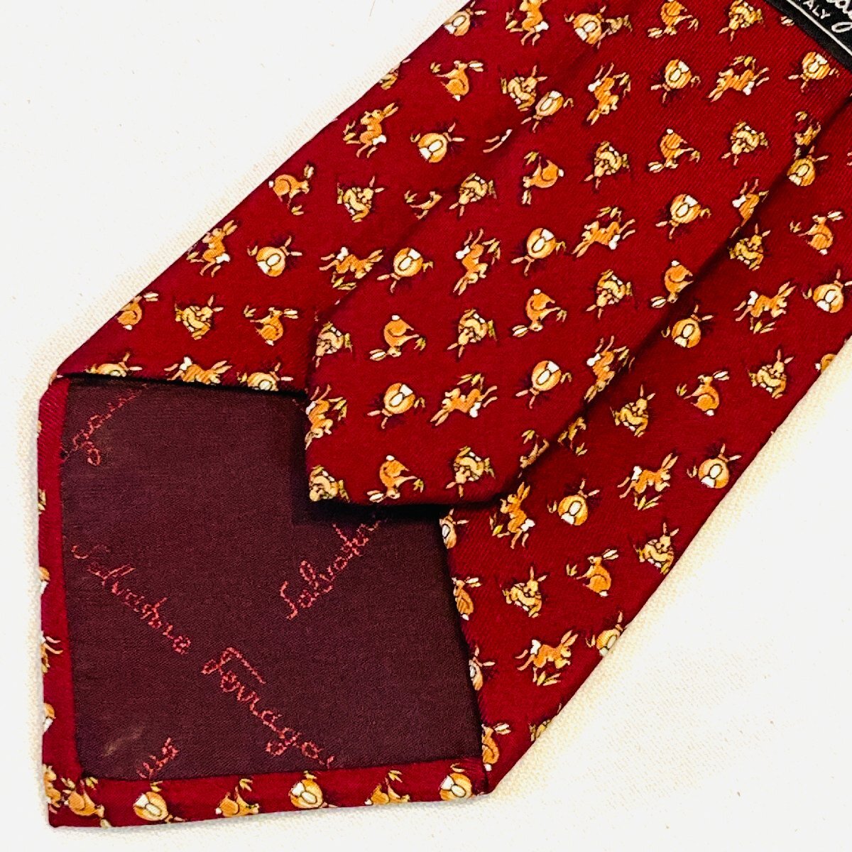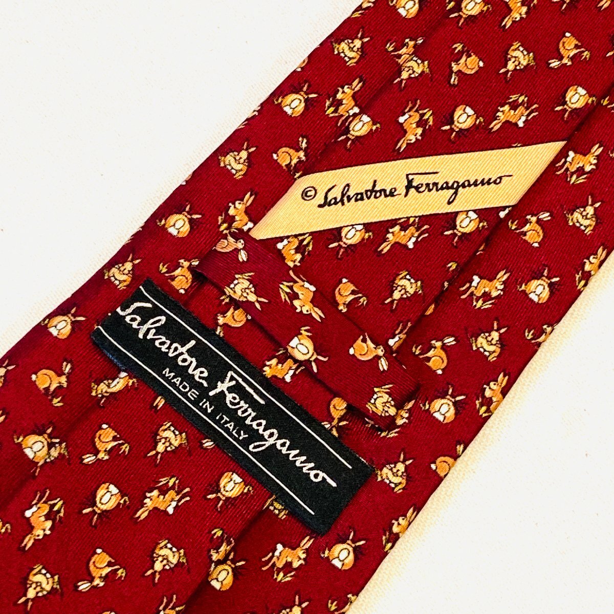 Salvatore Ferragamo サルヴァトーレフェラガモ イタリア製 絹 シルク SILK 100% 高級 ネクタイ ボルドー系 総柄 アニマル柄 兎