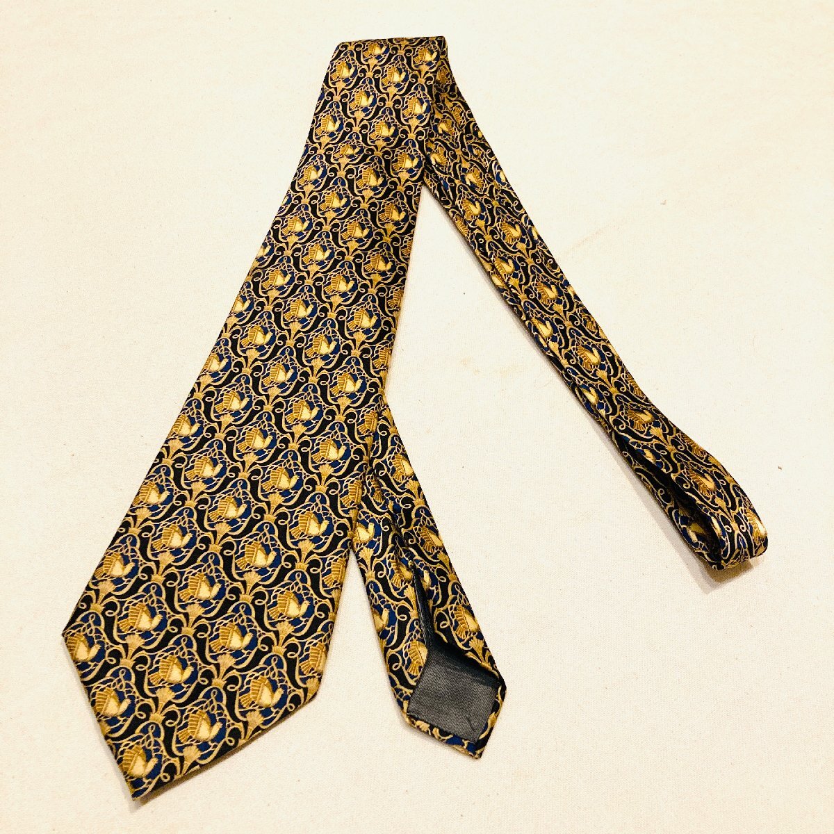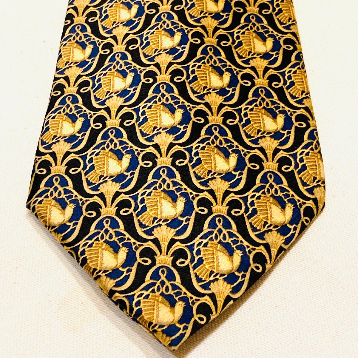 LANVIN PARIS ランヴァン フランス製 絹 シルク SILK 100% 高級 ネクタイ ブラック/ゴールド系 鳥モチーフ