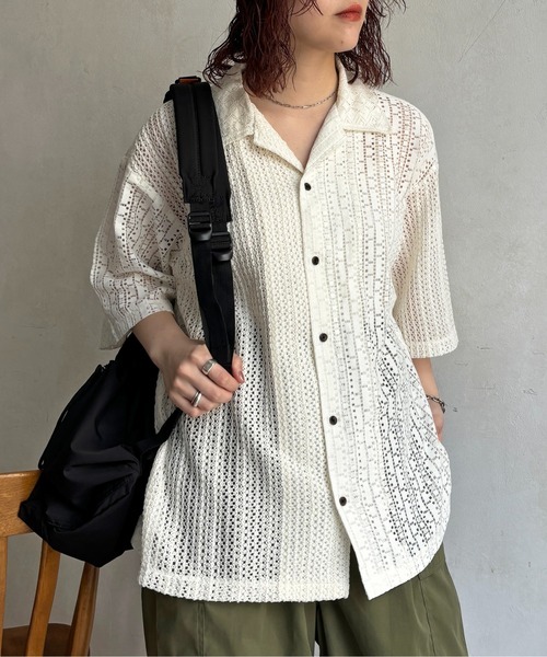 キーワード:シャツ メンズ コットン ロング丈 開襟 半袖 無地 夏 春