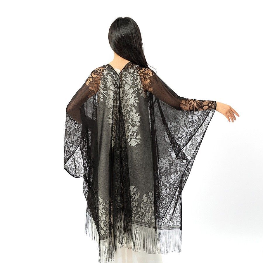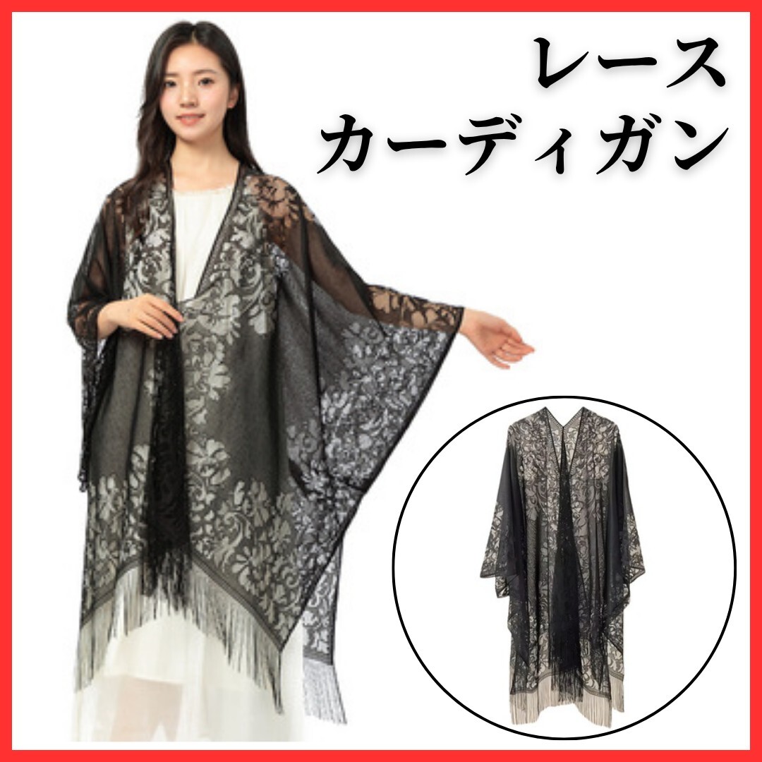 透け感のある繊細なレースが美しく揺れる、エレガントなロングショール!