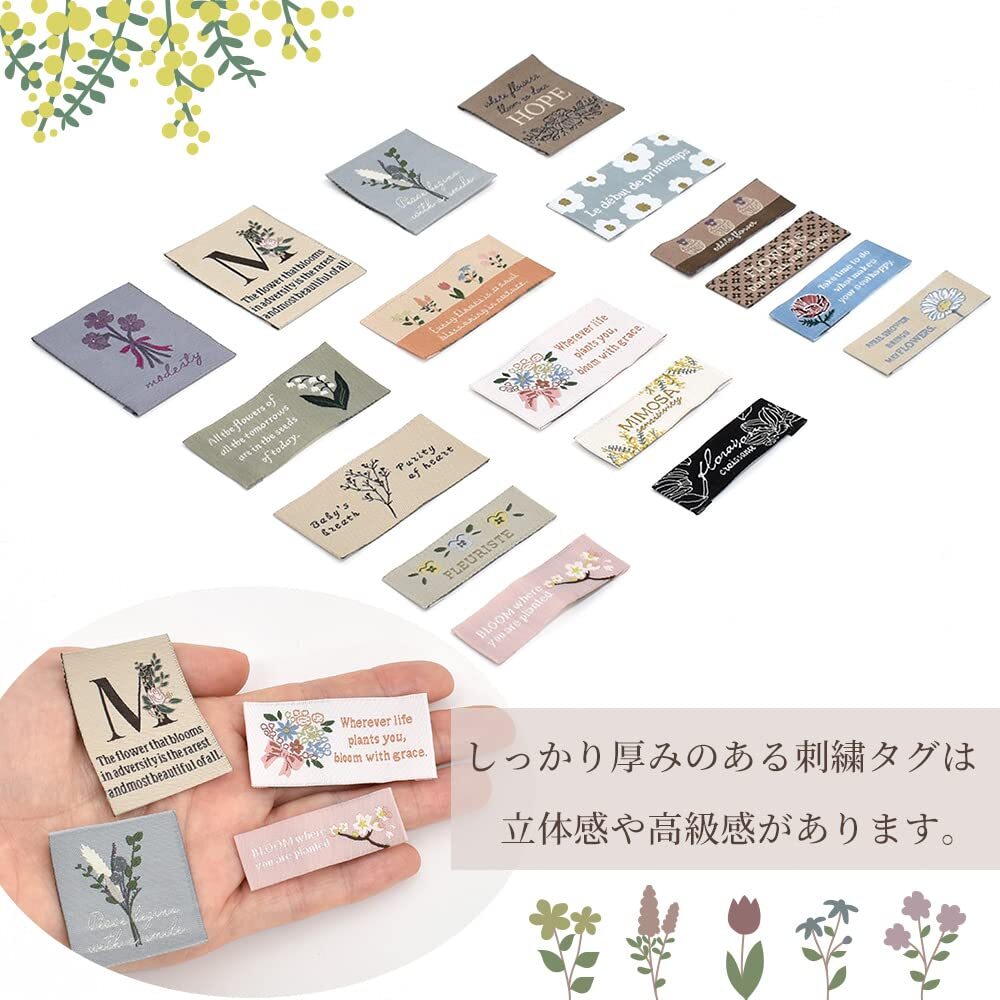 MYmama フラワー 刺繍 タグ 17枚セット ワッペン ハンドメイド ラベル