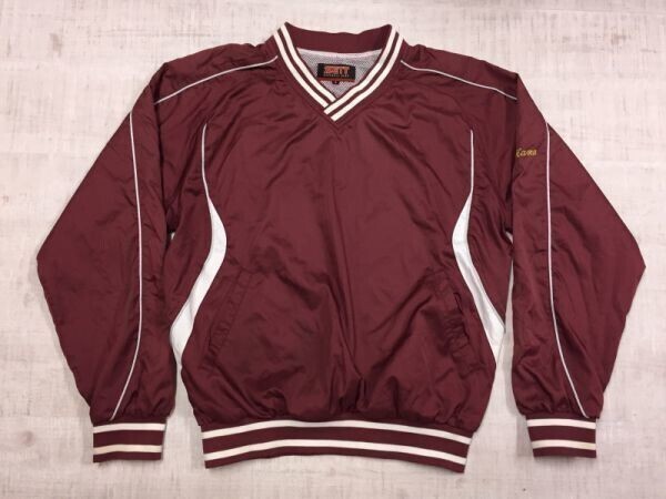 ゼット ZETT リブボーダー Vネック 野球ウェア プルオーバー グラウンドコート スニードジャケット メンズ S エンジ