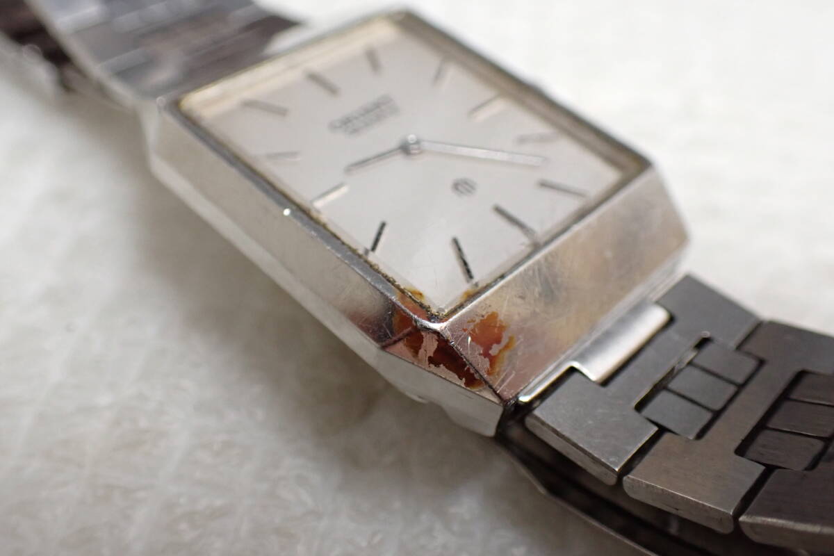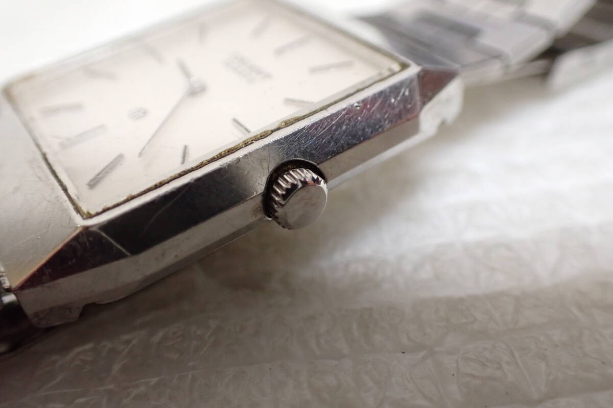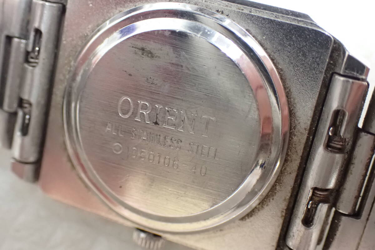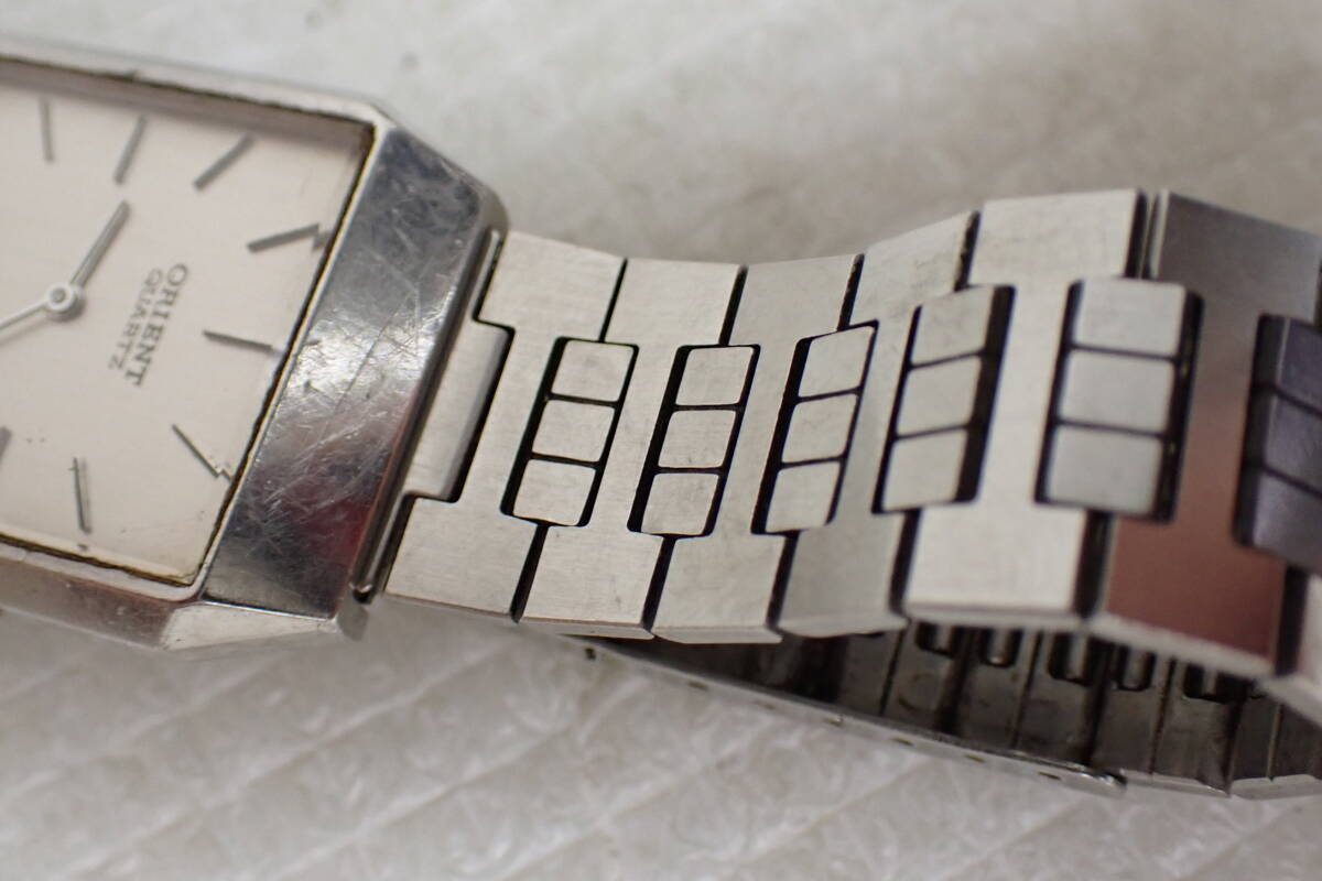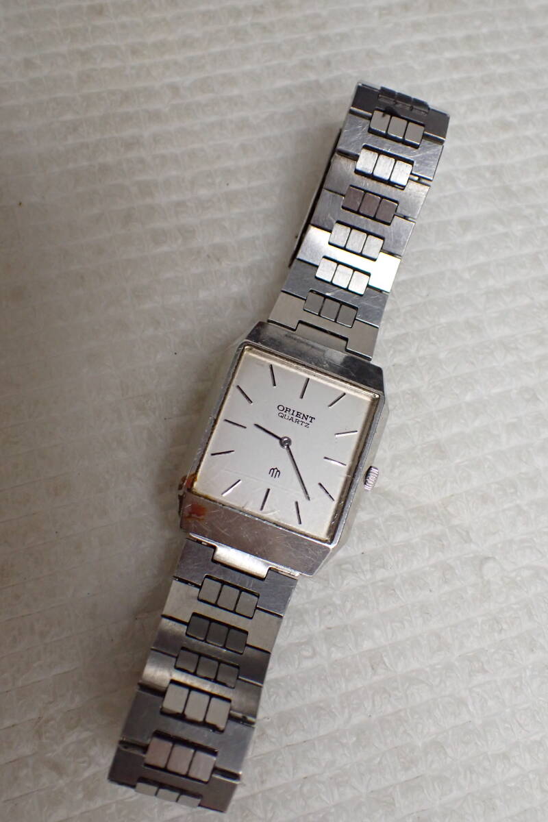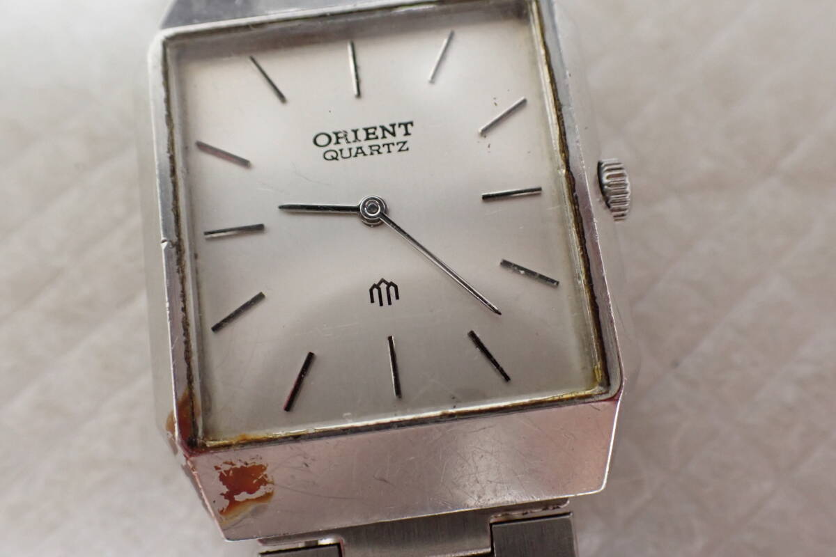 ORIENT オリエント クォーツ腕時計 スクエア 050106ー40 不動品 定形外郵便全国一律270円 D2-MA 中古品です。 風防にスレや小傷、ケースやベルトにスレや小傷、汚れや錆の付着がございます。 電池切れかと思われますが、稼働しておりません。 落札者様での電池交換が必要になりますが、交換後、動く保証はございません。 ○サイズ ケース 約3.5cm×約3.0cm(リューズ含む) ベルト幅 約1.5cm 腕回り 約17cm 重量 約55g ※素人採寸の為、多少の誤差はご了承下さい。 詳しい状態などは画像を参考に判断してください。 状態の説明はあくまでも出品者の主観ですので、神経質な方のご入札はお控え願います。 写真に写っている物がすべてですので、その他に付属品などはありません。 ※ご使用のパソコン、モニターなどの環境によっては実際の色と若干異なって見える場合がございます。 お探しの方はお見逃しなく! この機会にぜひどうぞ! ノークレーム・ノーリターンとなります。 よろしくお願いします。 特定商取引法に基づく表記 【会社名】 株式会社 西川殖産 【代表取締役】 西川 守 【古物営業許可】 兵庫県公安委員会許可 第631641300006号 【店舗】 エタニティ野里店 【営業所所在地】 兵庫県姫路市野里311-3 アクロポリスⅡ-1F 【連絡先】 079-222-7705 【営業時間】 午前10時~午後7時 【定休日等】 水曜日は定休日となっておりますので、火曜日の夕方から水曜日にご入金、ご連絡などをしていただいた方へのご連絡・発送などは翌日以降となってしまいます。 オークションにつきましても、火曜日の夜から水曜日にご落札していただいた方へのご連絡は翌日以降となってしまいます。 ※その他、GW・お盆・年末年始などもお休みを頂いておりますので、その期間中などもご連絡・発送などできません。(※休みの期間はその都度異なりますので、お急ぎの方は事前にご質問などでご確認していただけますよう、よろしくお願いします。) こちらの都合で誠に申し訳ありませんが、あらかじめご了承いただいた方のご入札をお願い致します。 | |||