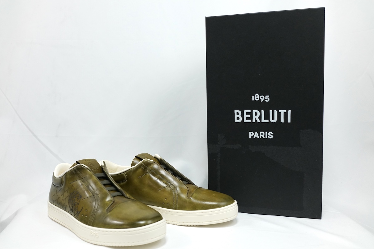 BERLUTI ベルルッティ プレイタイムスクリット レザースリッポン アシッドグリーン レザー メンズ 7.5サイズ (260)【中古】新古品