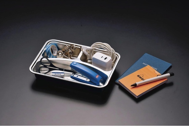 デスクの引き出しに入れて文具やギアを整理するトレーとして使用するのもオススメ。