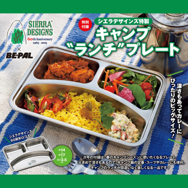 『BE-PAL ビーパル』2025年4月号付録、“シエラデザインズ特製 キャンプランチプレート”の未開封品です。