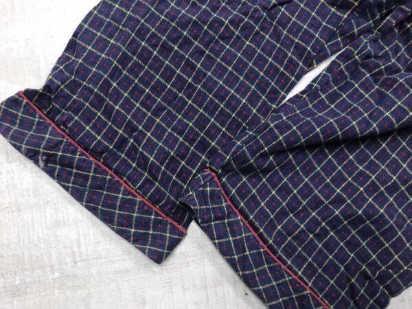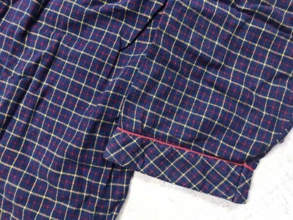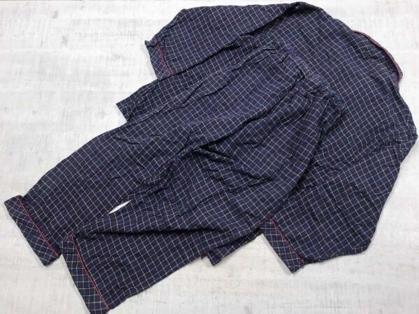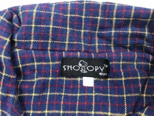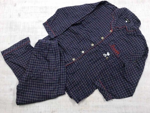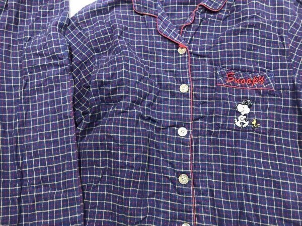 スヌーピー SNOOPY 開襟シャツ イージー パンツ 刺繍 パジャマ ルーム スリープウェア 上下セットアップ レディース チェック M~L 紺です。