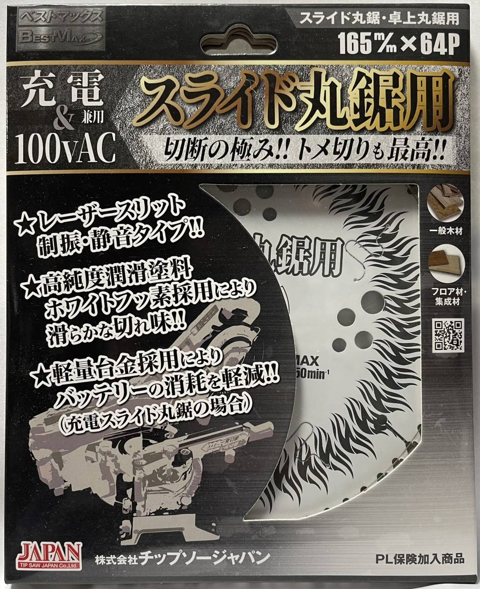 充電 100VAC兼用 スライドマルノコ用チップソー 165×64P チップソージャパン BTM-165 卓上マルノコ丸鋸