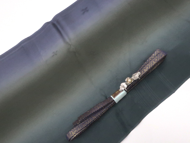《京都一輝堂》リサイクル着物 和装小物 帯締め帯揚げセット 佐賀錦 ぼかし 帯留め付き 帯締 帯揚 25w08-10636