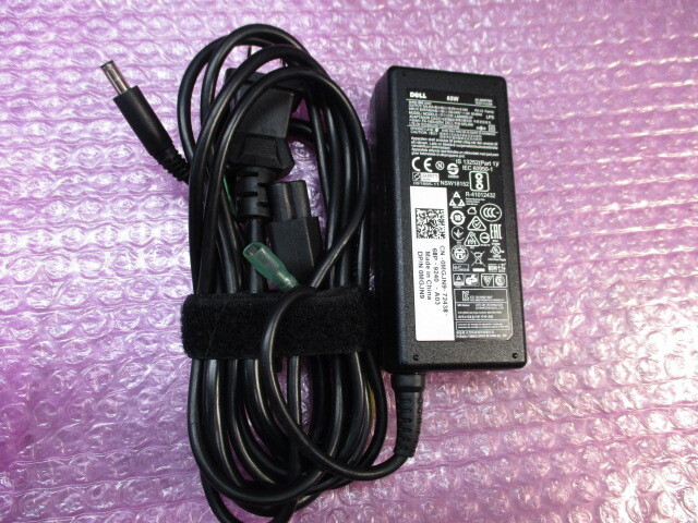 DELL純正 19.5V 3.34A 細ピンタイプ 65W ×1個 HA65NS5-00 LA65NS2-01 等 外径約4.5ミリ 電源ケーブル付 中古