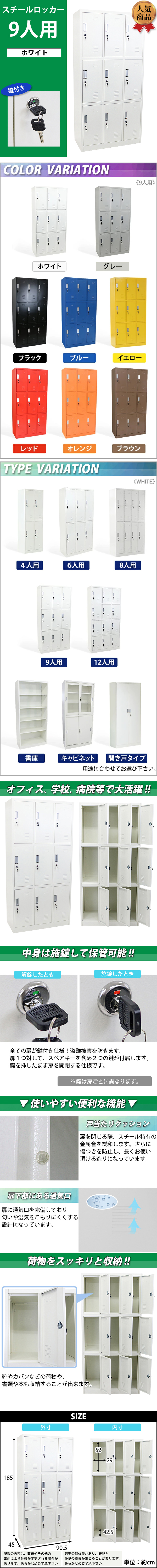 | 商品名 | 送料無料 ロッカー おしゃれ スチールロッカー 9人用 ホワイト 鍵付き スペアキー付き 3列3段 スチール製 収納 オフィス 事務所 会社 店舗 病院 学校 業務用 スリム かぎ付き 更衣ロッカー 更衣室 オフィスロッカー スチールキャビネット 白 10-011wh 10-011newwh |