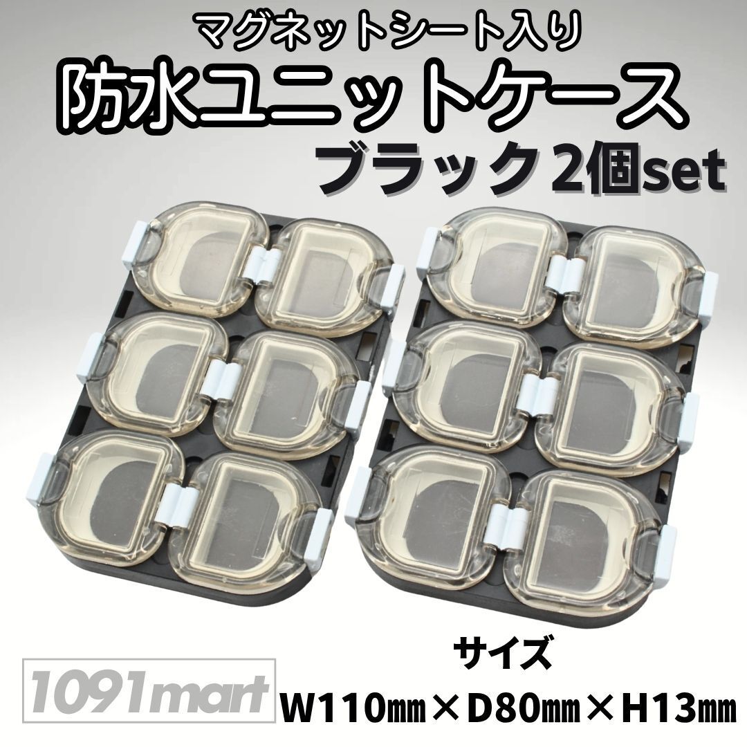 マグネット付き 防水ユニットケース ブラック 2個セット ツールケース 小物ケース 釣具 小物収納 ガン玉 釣り針 ウキ止め【1091mart】