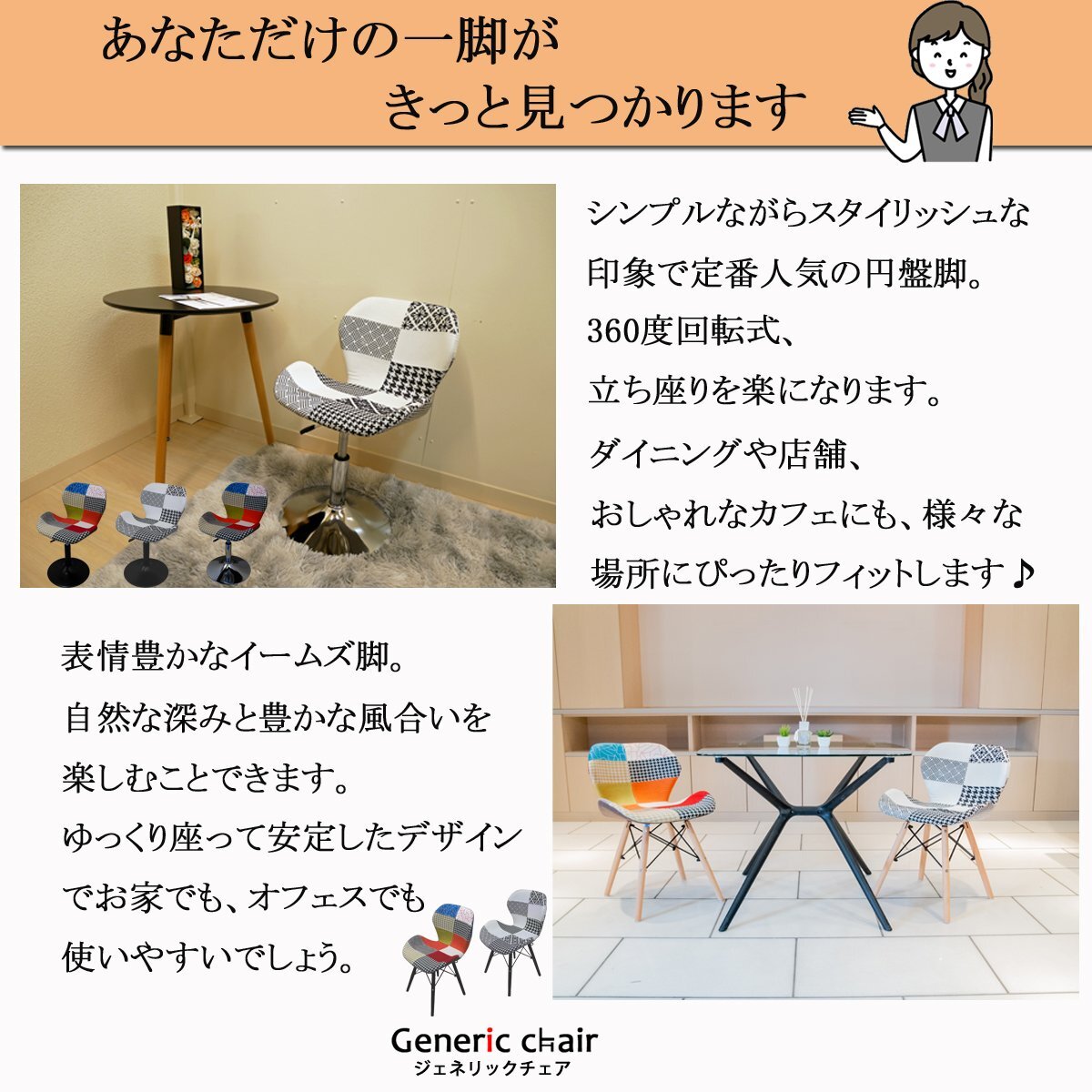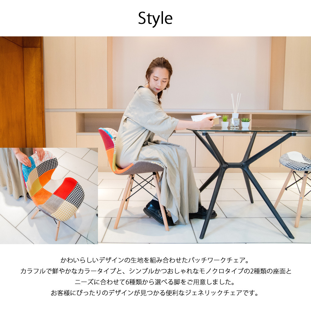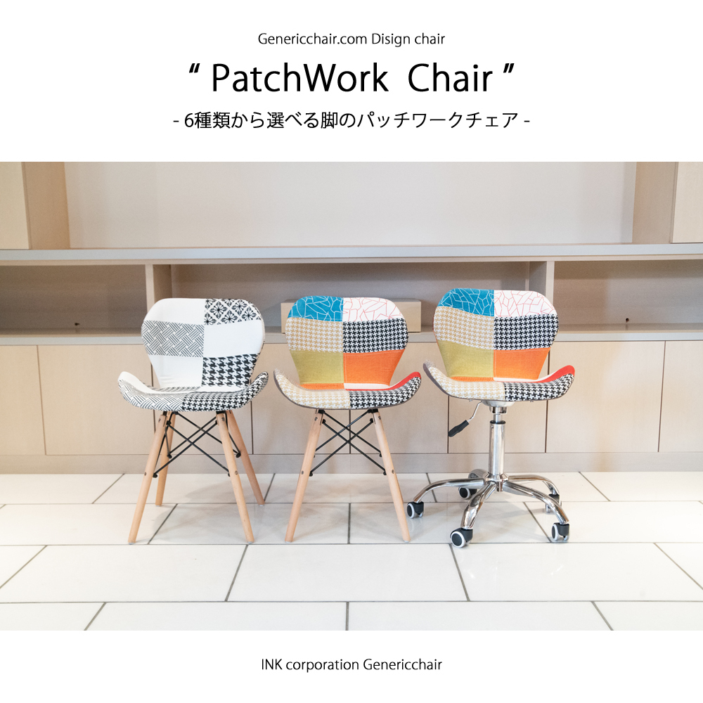 脚が選べるパッチワークチェア。座面が2柄、脚が6パターンの12パターンのタイプからお好きな形がお選びいただけます。