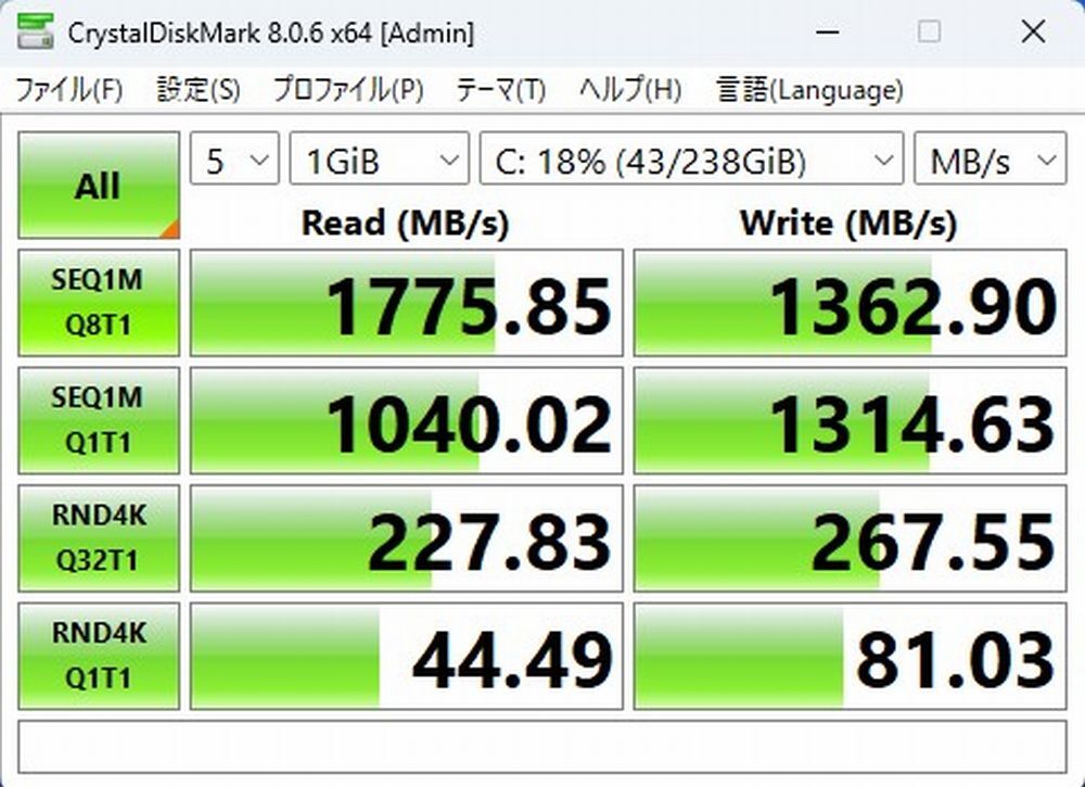 新品(M.2 2280 PCIe3.0×4) ※オプションで変更可(お見積もり) |