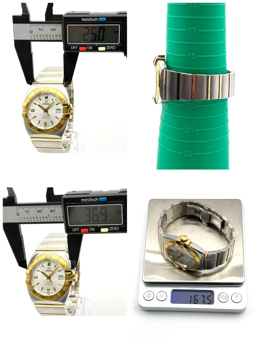 商品名 ・腕時計 OMEGA オメガ コンステレーション ダブルイーグル ゴールド シルバーカラー 重量:約167.5g ブランド ・OMEGA サイズ ケース幅:約36.9㎜(リューズ含まない) ラグ幅:約25.0㎜ 重量:約167.5g ※若干の誤差がある場合がございます。 状態について ・ランク →【B】 キズ・汚れなど、使用感が見受けられますが、 中古品としては比較的良好な状態です。 ・コメント →五分間の針の稼働は確認できましたが、出品時に振ったり巻いたりして針が動いた状態であり長時間の稼働は行っておりません。 →全体的に小キズや汚れがあります。 →すり替え防止の為返品不可。 →状態は画像にてご確認ください。 ───────────────[ 状態ランク表 ]──────────────── 【N】 新品・未使用品の新古品です。 【S】 キズ・汚れがほとんど見受けられず、非常に状態の良い商品です。 【A】 わずかにキズ・汚れがありますが、全体的に状態の良い商品です。 【B】 キズ・汚れなど、使用感が見受けられますが、 中古品としては比較的良好な状態です。 【C】 キズ・汚れ・型崩れなどの目立つ使用感がありますが、ご使用には問題のない商品です。 【D】 通電の確認はできておりますが、稼働や動作の確認は行っておりません。 【E】 破損や欠損などが見受けられる商品ですが、素材やパーツとしての価値があり、リメイクや部品取りにおすすめの商品です。 ※ランクは社内基準となりますので、参考としてご参照ください。 ──────────────────────────────────────── 送付方法 ・ゆうパック(着払い) 60サイズ ※千葉市美浜区からの発送となります。 ※出品時に商品を梱包しているため、「同梱不可」となります。 ※こちらの商品は「発送のみ」の対応となります。 防犯上の観点から、「引取り限定」「家財便または引取り」の商品以外は直接の引取りはお断りさせていただいております。 | |||