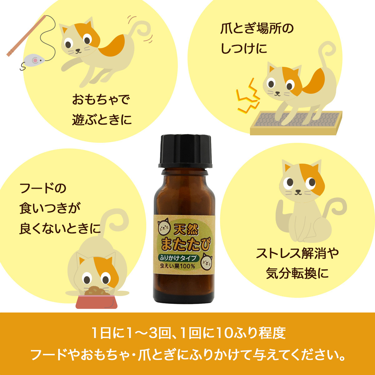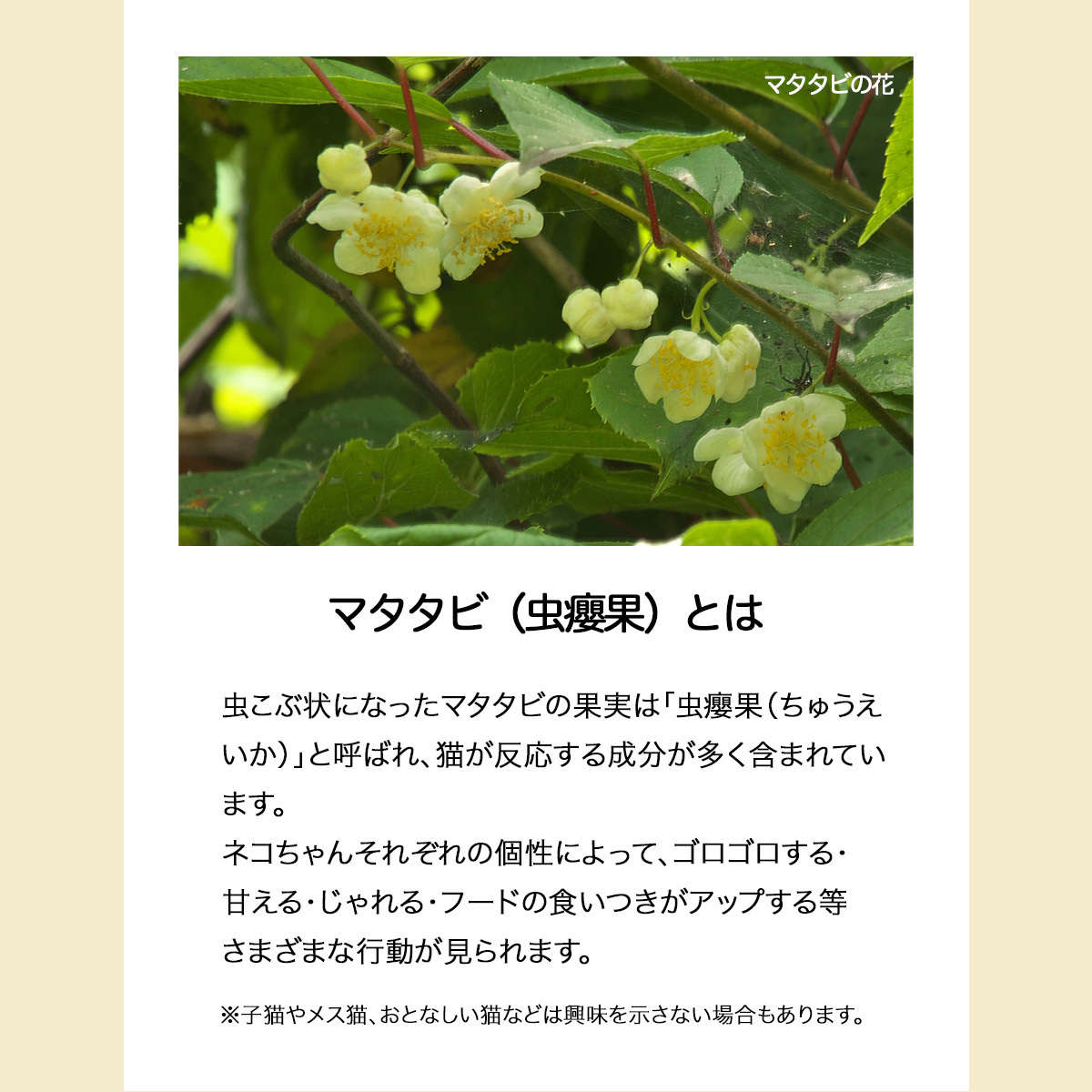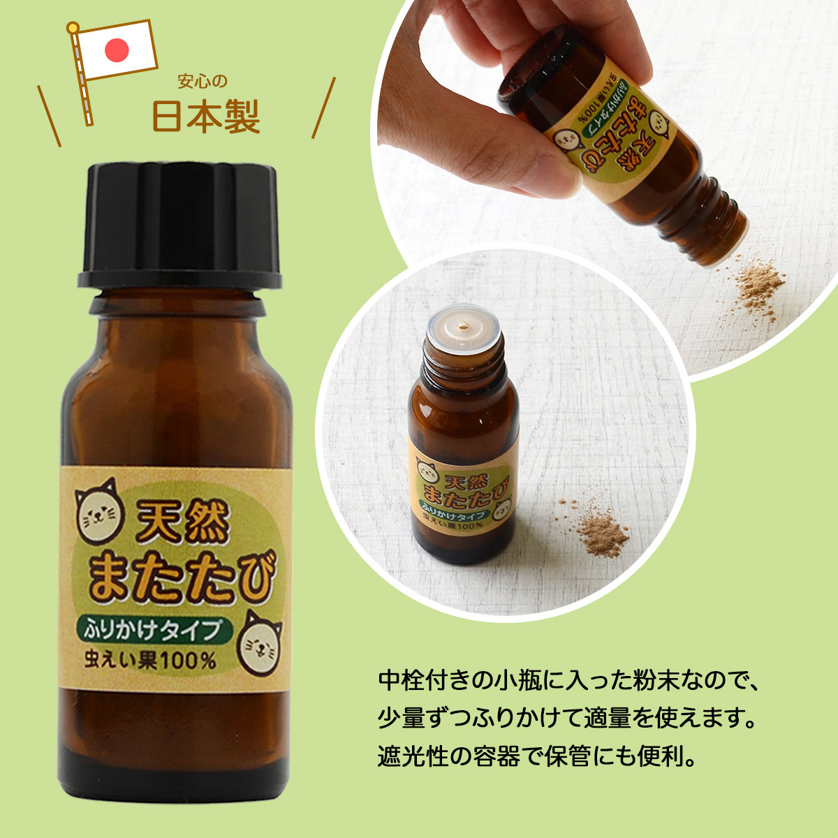 | 説明 | 猫ちゃんが大好きなまたたびの粉末です。 こんなときにおすすめ♪ ご機嫌斜めな猫ちゃんのご機嫌取りに。 普段のご飯の喰い付きが悪い時に。 爪とぎ場所のしつけなどに。 少量づつ振りかけることができます。 遮光性のある容器で、品質をより長く保つことができます。(高温多湿はさけてください) |