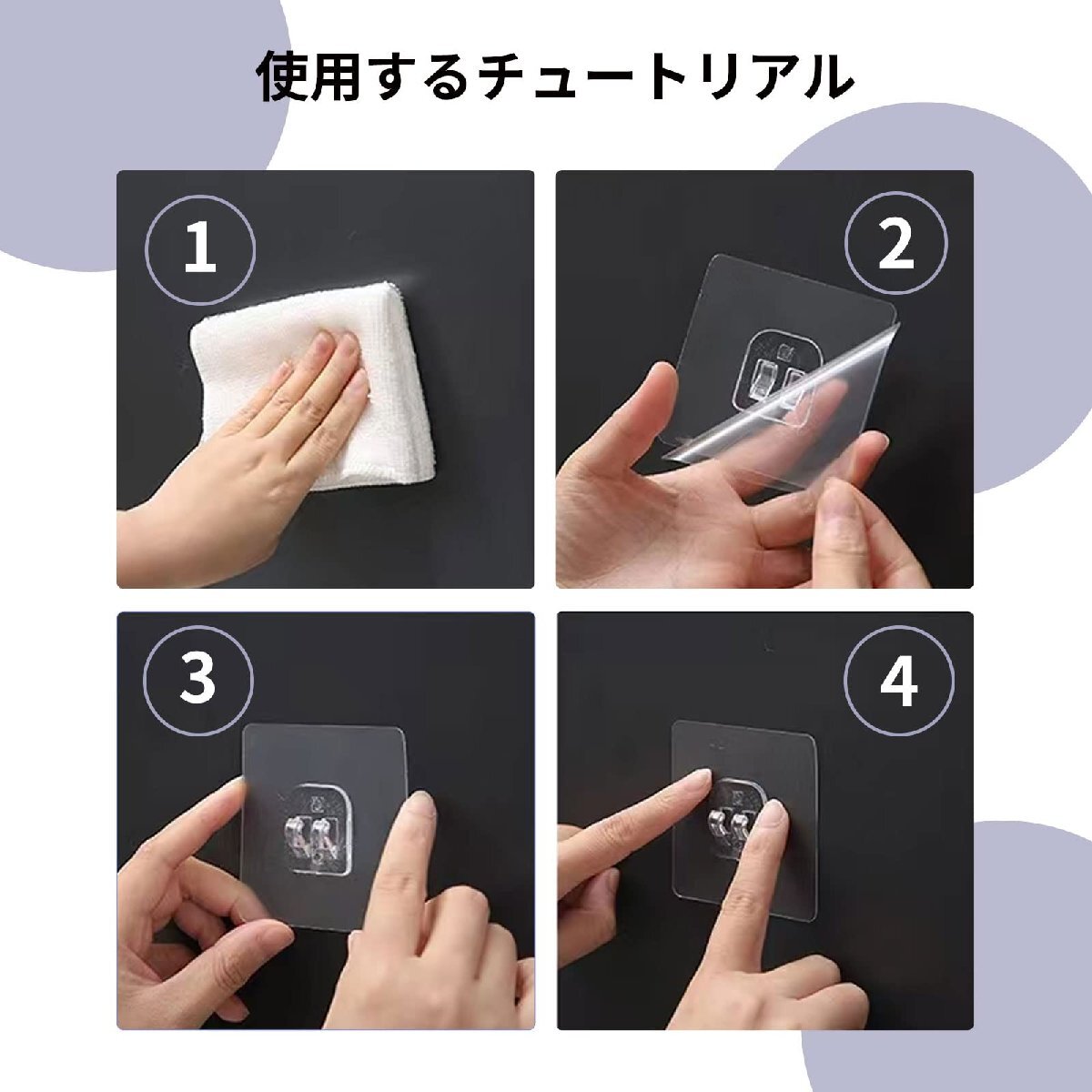 【取り付け簡単】ドリル穴や壁の破損がない。壁を清潔に保ち、フック裏面シールをはがし、フックを壁に貼り付けてしっかりと押さえ、12時間以上乾燥させたまま、物を置く。取り外しやすく、壁に跡が残らない。