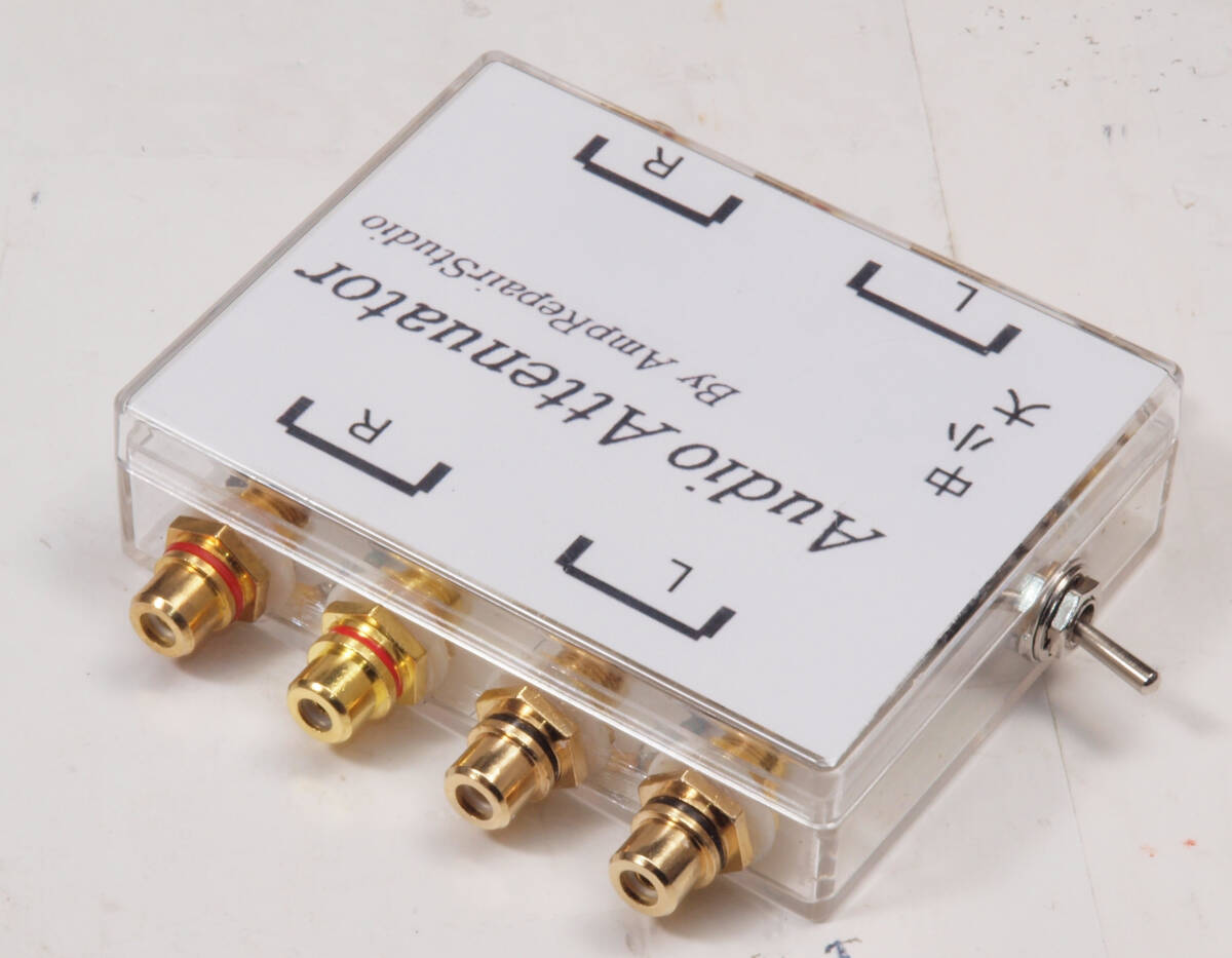 プリアンプとメインアンプの間に入れるアッテネータ(減衰器)です