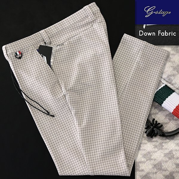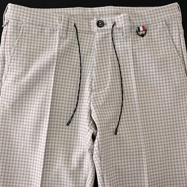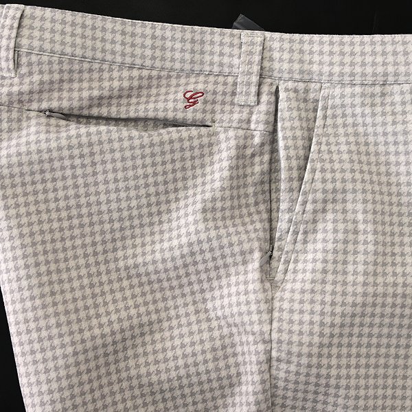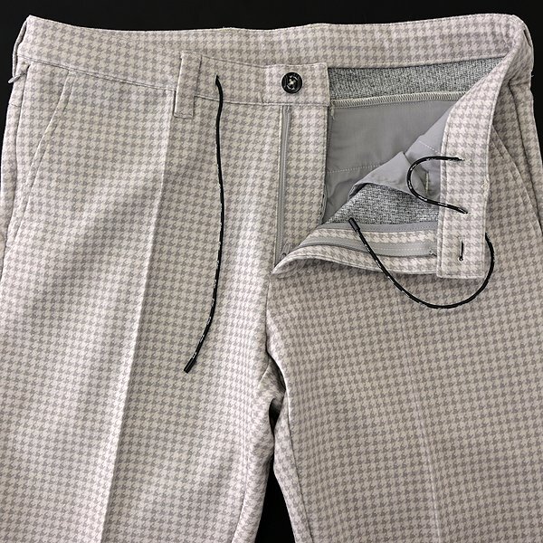 ボンディングの手法でリアルダウンを挟み込んで、スーツ生地としても使用できる程の「薄いダウン」を実現した【Down Fabric】のパンツです。 【Down Fabric】は、3Dプリンターの技術を応用した特殊な加工によって、表地と裏地の間にダウンをラミネートすることで空気層を 形成し、内部の環境を快適に保つ機能的な素材。 冬の寒い外気に対しては保温効果を発揮し、着用のまま暖房の効いた室内に移動しても、内部を快適な温度に保つ機能を有するテクニカルファブリックです。 生地本体は高機能を有するテクニカルジャージー素材でありながら、表面にクラシックな千鳥柄をプリントしているので、大人っぽいトラッドな面持ちとスポーティーな着心地を両立。 表面・裏面ともにカシミヤタッチの滑らかな微起毛仕上げが施されていて、より秋冬らしい暖かみとシーズンムードを備えており、冬のゴルフパンツとしても最適です。 身体の動きに沿う伸縮するジャージー素材なので、ダウンの暖かさに心地良い着用感もプラスされ、快適に着用いただけるのもポイントです。 シルエットは膝下に緩やかなテーパードラインを描く美脚仕様で、生地を縫い上げてくリースラインを作る永久プリーツ加工が施されているので、どんなに動いても品を保つことができる大人に相応しいデザイン。 バックポケットと右腰のインビジブル(隠し)ポケットにはコンシールファスナーを採用し、よりミニマルで利便性の高いアイテムに仕上がっています。 【デザイン】 ・ノータック ・ジッパーフライ ・テーパードシルエット ・ウエストにゴムとドローコード入り |