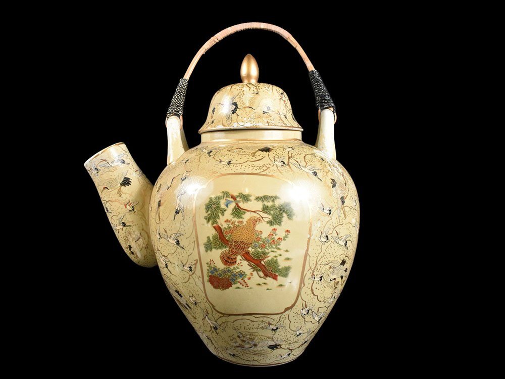 | 商品名 | 【雲】大珍品 薩摩焼 金彩鶴群鷹絵付大急須 高さ67.5cm 古美術品(鷲花瓶飾壺)DJ901 DTgkujy |