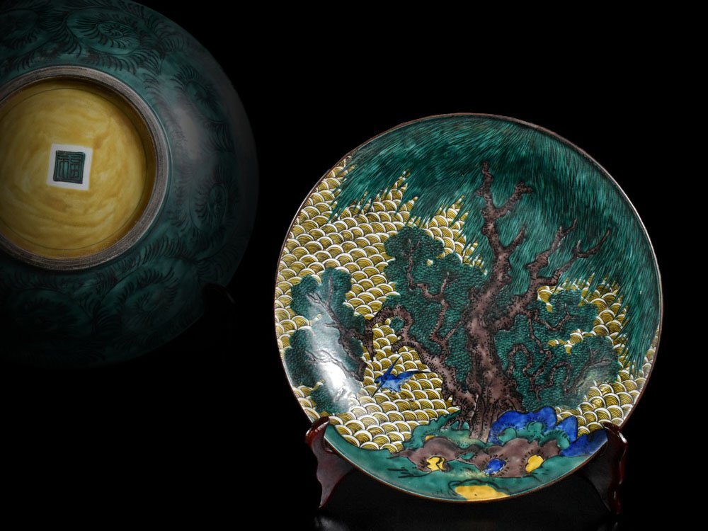 | 商品名 | 【雲】某収集家放出品 古九谷 青手松鳥青海波絵付大皿 飾皿 直径42cm 角福 古美術品(吉田屋再興)DJ885 UTnmkg |