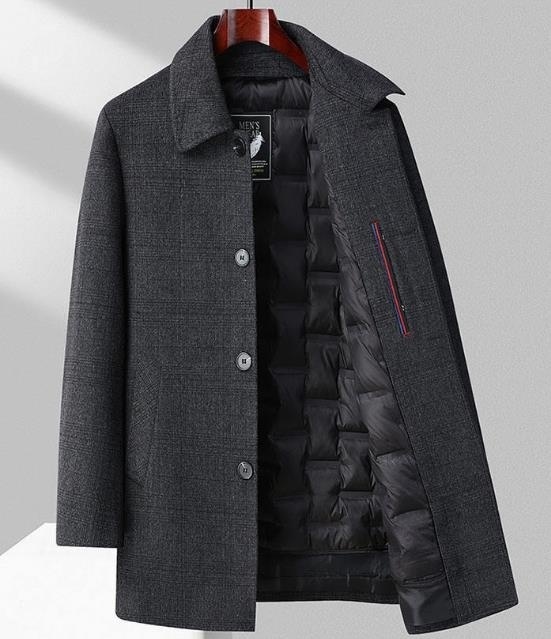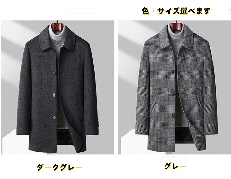 ステンカラーコート メンズ★新品 ダウンコート ダウンライナー ウールコート ビジネスコート アウター ビジネスジャケット【9915】ダークグレー M
