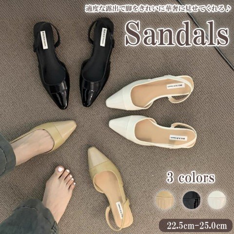 ・適度な露出で脚をきれいに華奢に見せてくれるバックストラップサンダル。