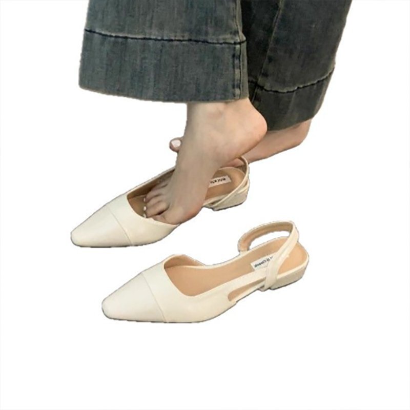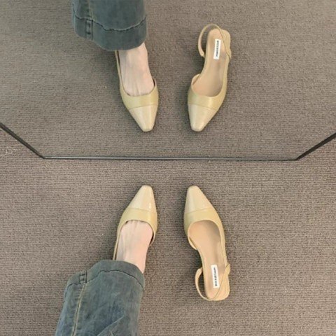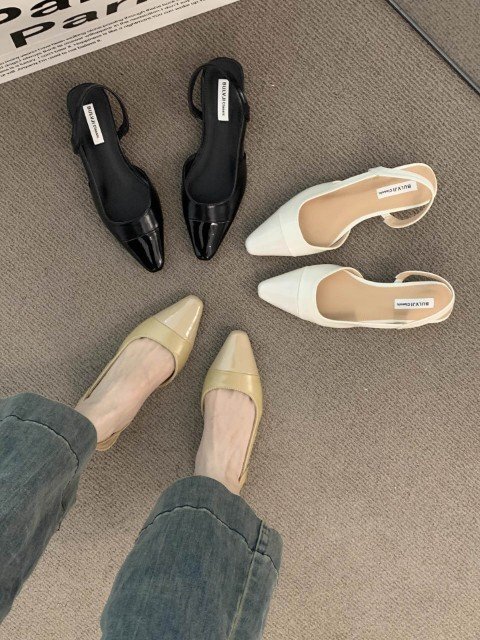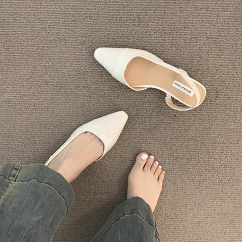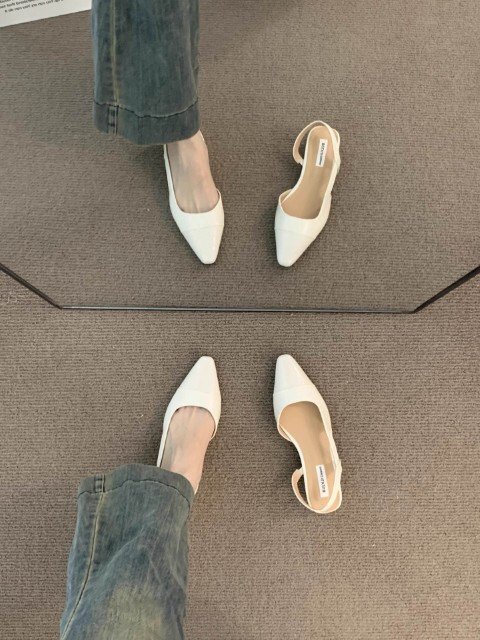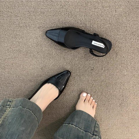 ・カジュアルにもフェミニンにも使えるかかとストラップのミュールパンプス。