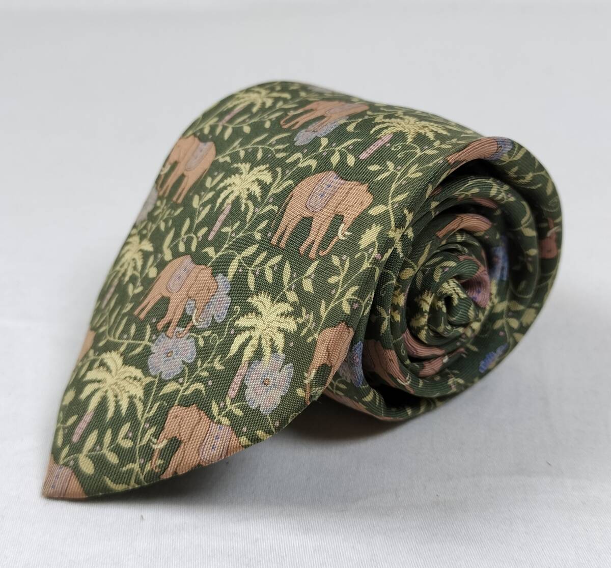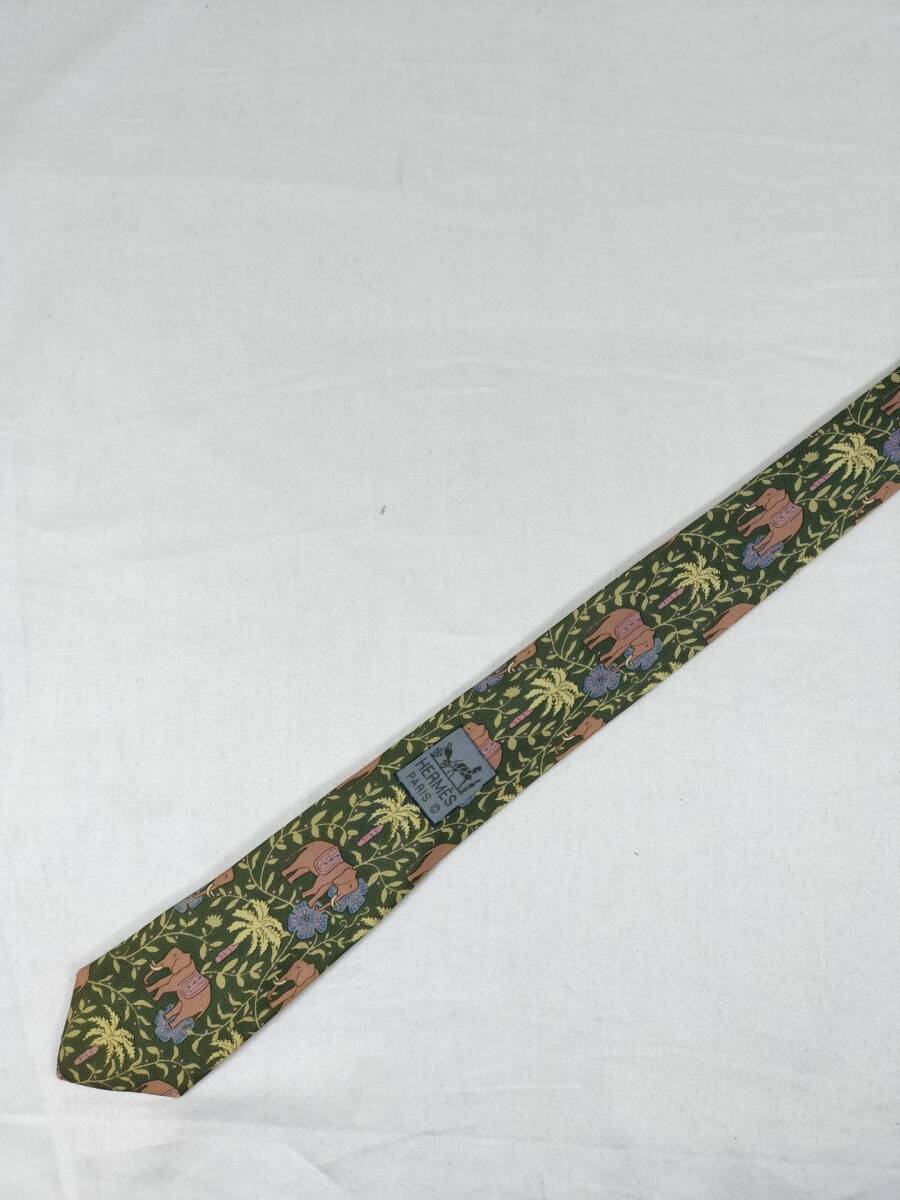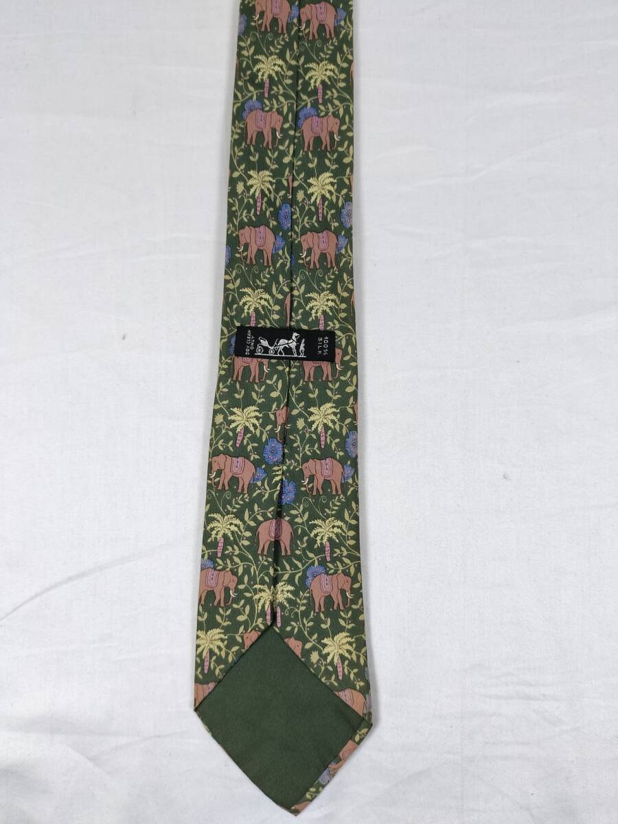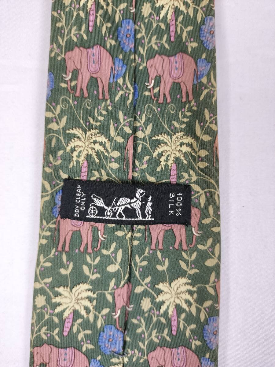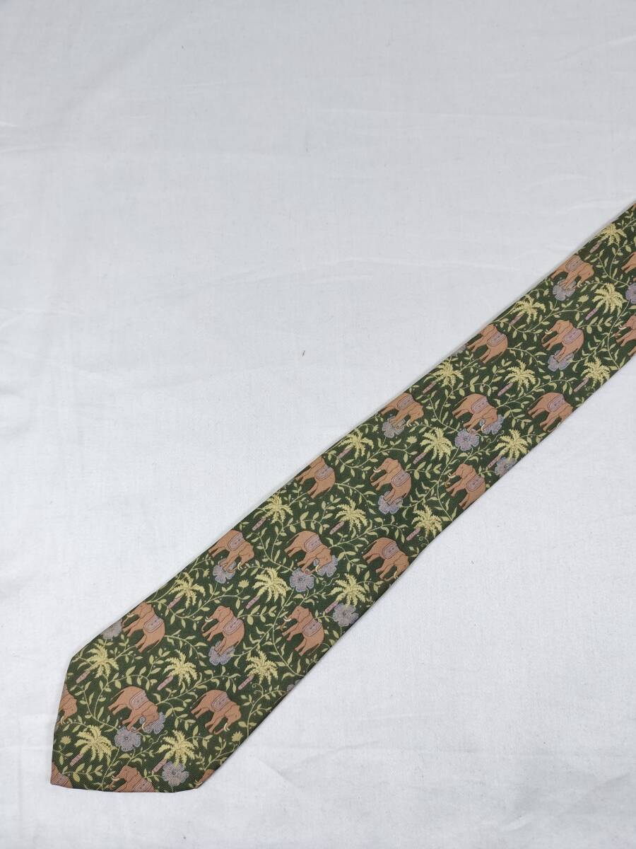 HERMES エルメス ネクタイ ◆象◆総柄◆動物柄◆フランス製◆シルク◆ハイブランド◆1105-8