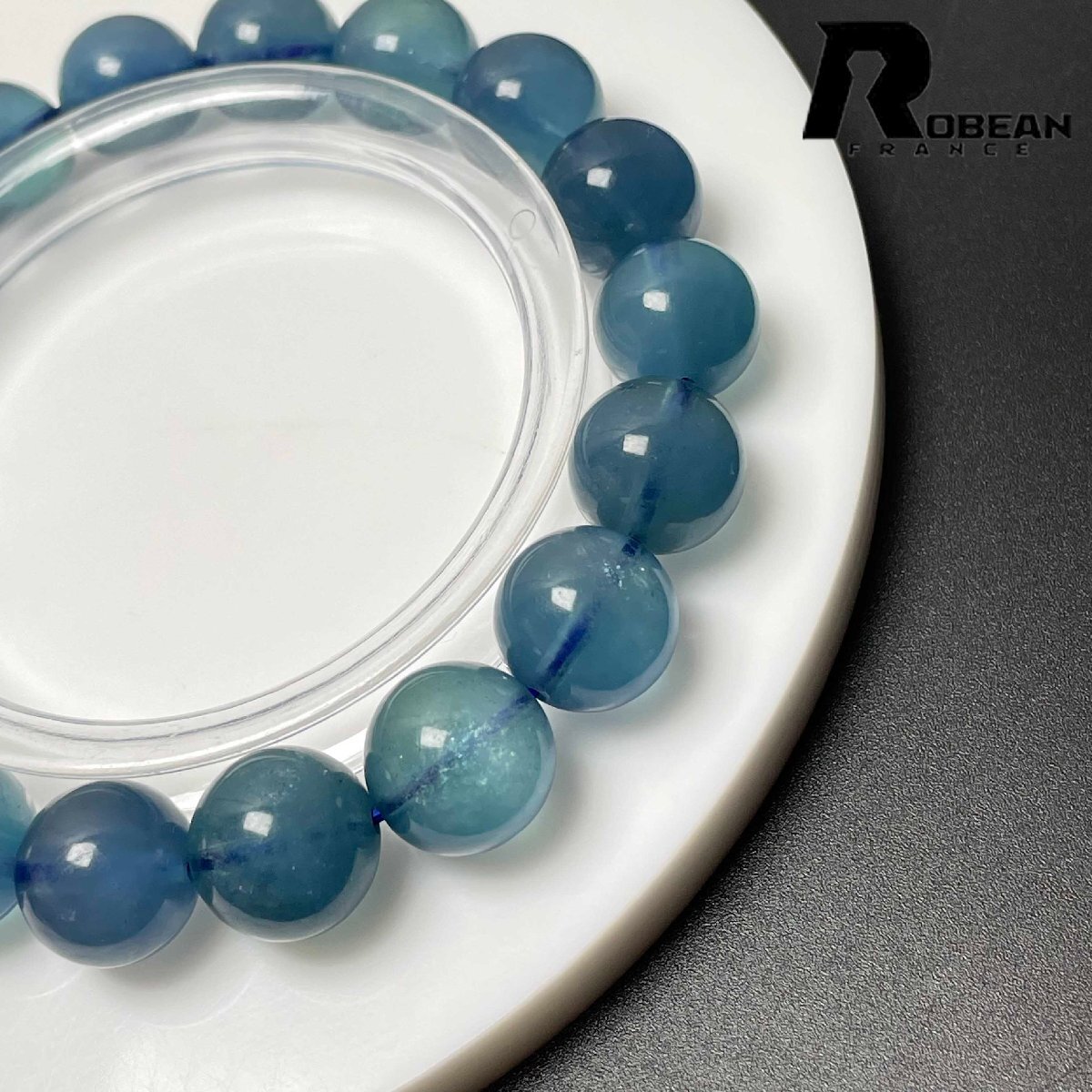 高級 EU製 定価14万円★ROBEAN・ブルーグリーンアクアマリン★パワーストーン ブレスレット 天然石 原石 お守り 11.4-11.8mm M0626684
