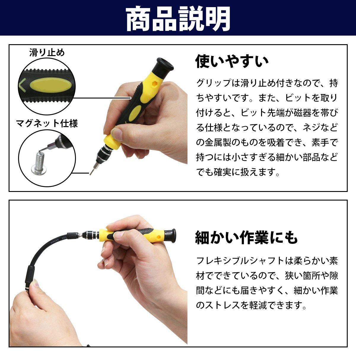 【送料無料】精密ドライバー 45種 セット 延長シャフト ビット ネジ グリップ 延長バー マグネット 磁石 特殊 工具 修理 メンテナンス