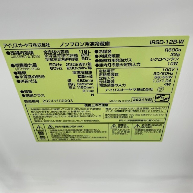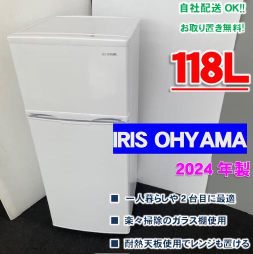 IRIS OHYAMA アイリスオーヤマ 2024年製 2ドア 118L 冷凍冷蔵庫 ③ IRSD-12B-W ホワイト S/N:00003 手渡し可 領収書発行可 【埼玉県より発送】 |