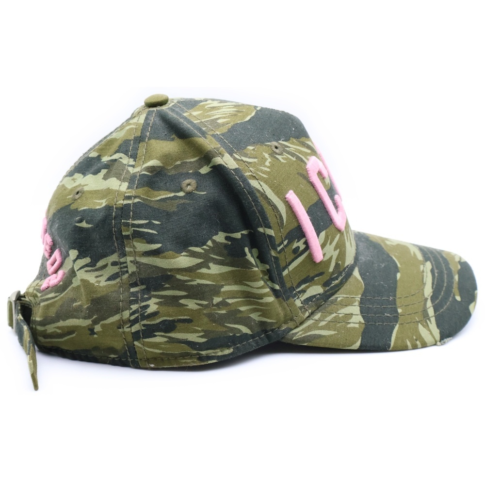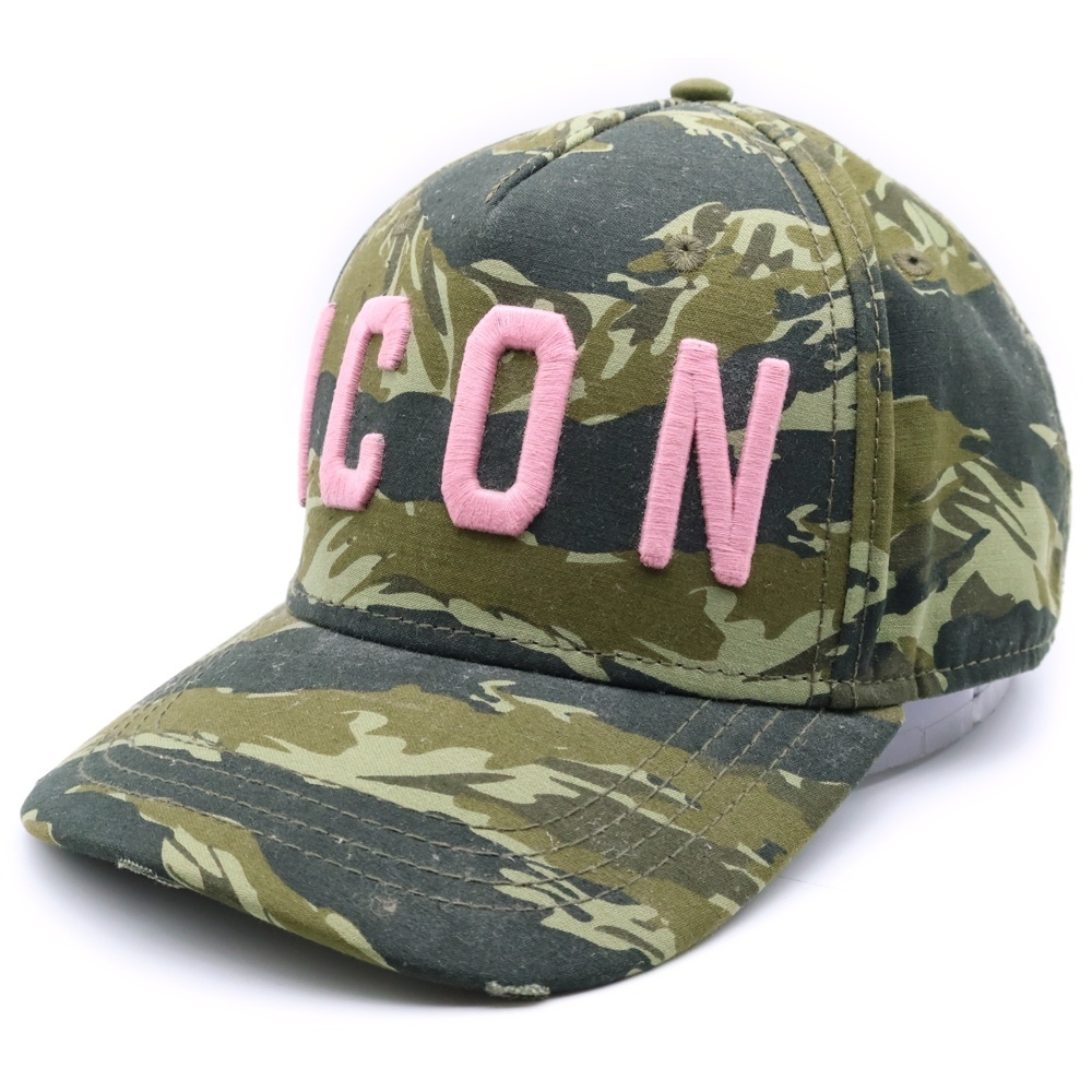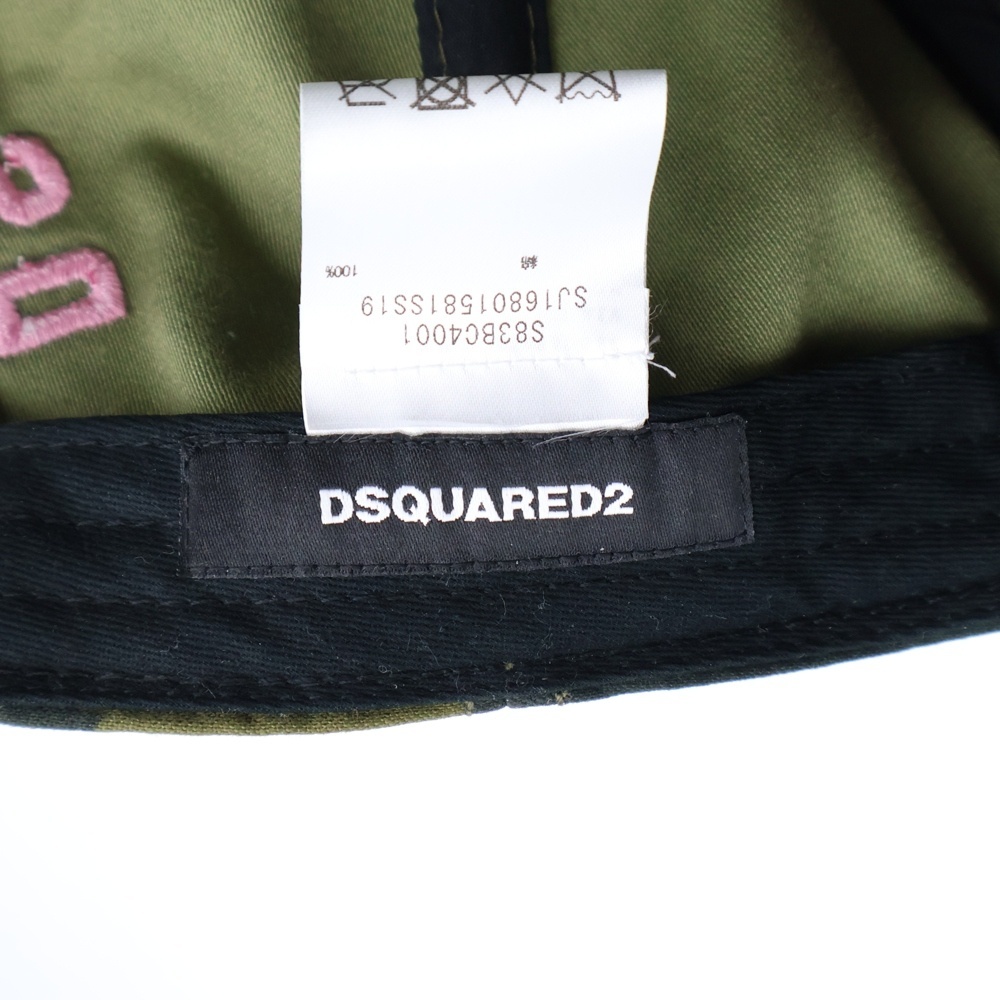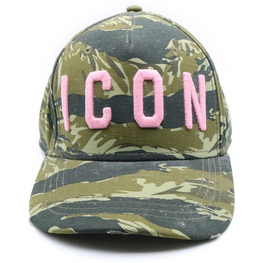 DSQUARED2 ディースクエアード ICON ロゴ刺繍 カモフラ 迷彩総柄 コットン 5パネル ベースボールキャップ 帽子 カーキ SJ16801581SS19