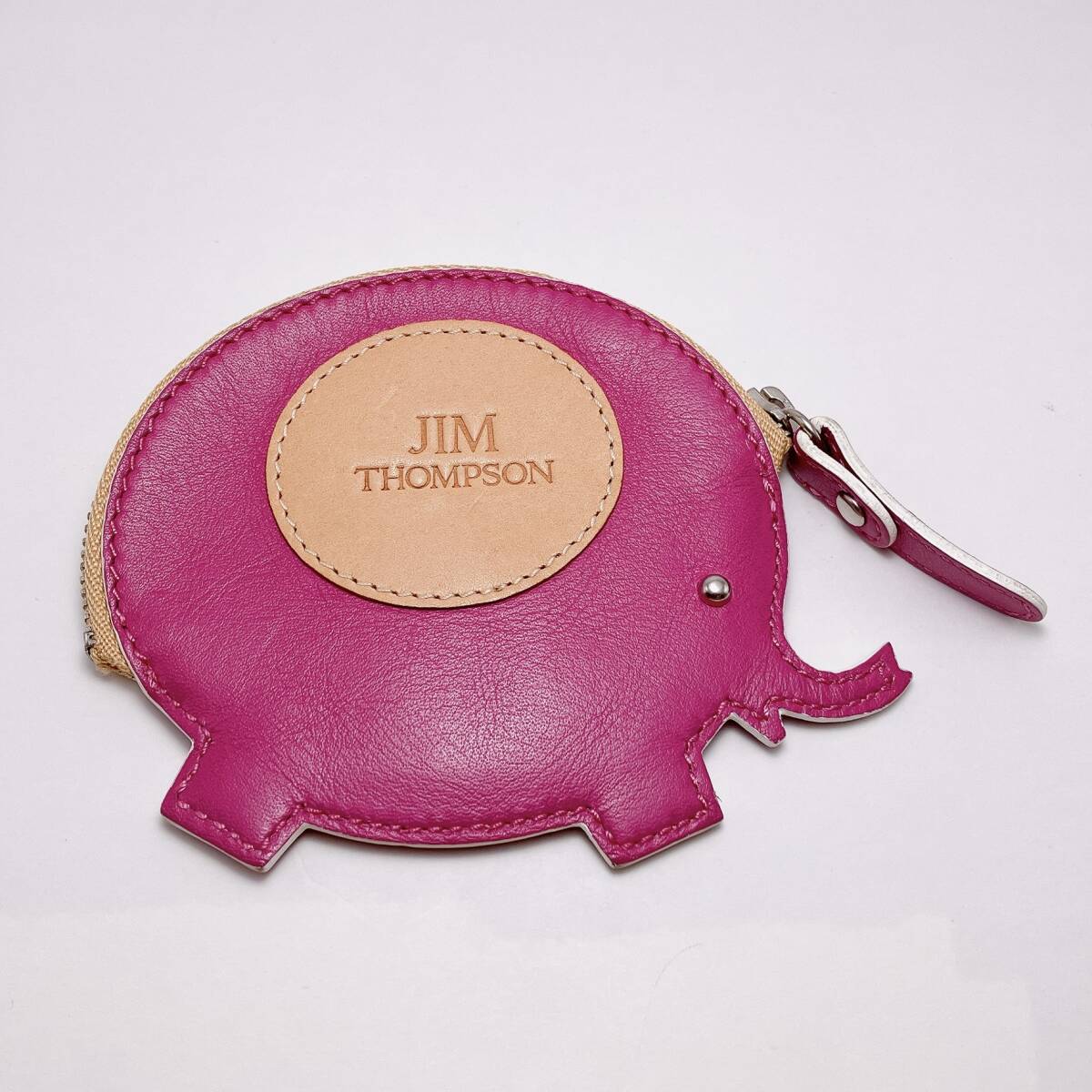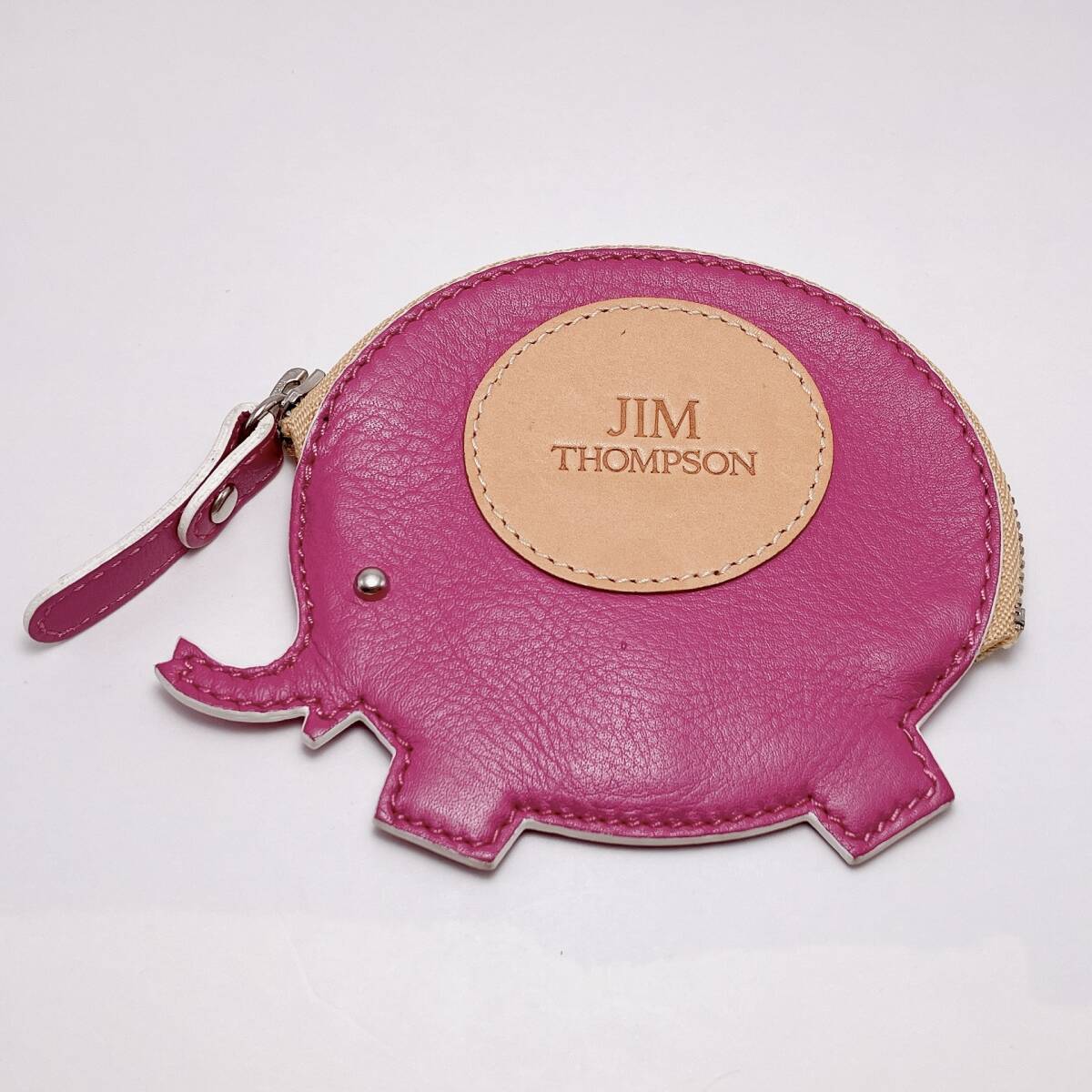 T-0026■ジムトンプソン JIM THOMPSON 本革コインケース 小物ポーチ ピンク 象 エレファント