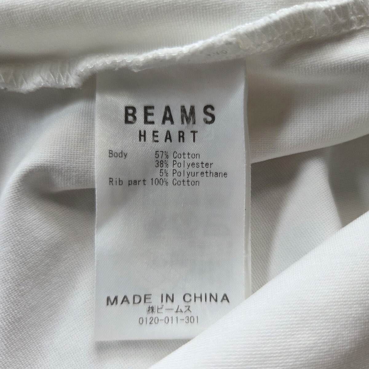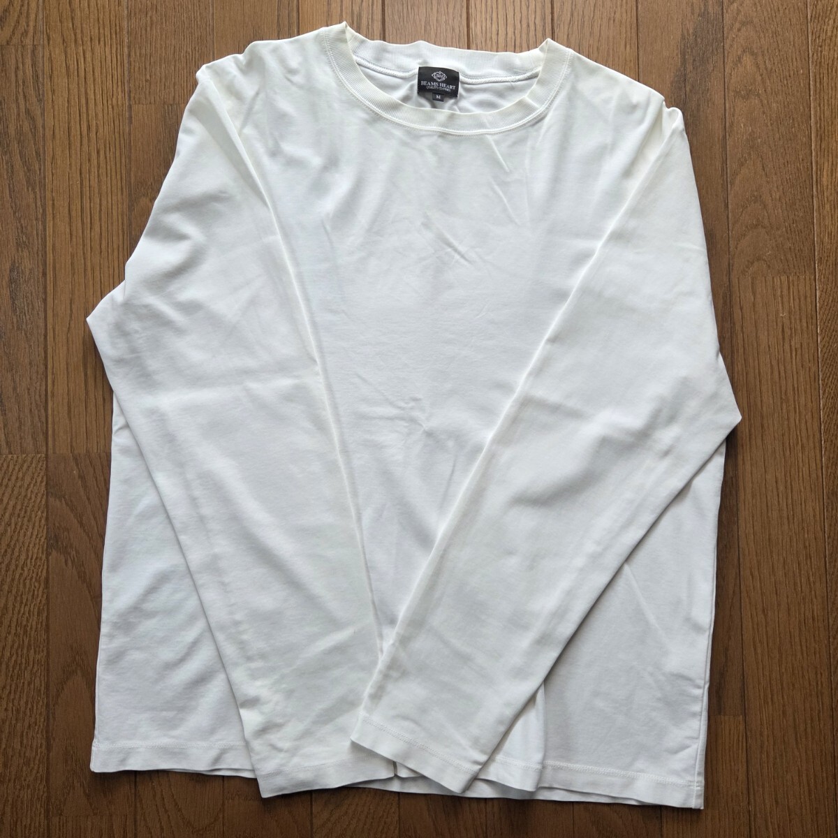 ビームスハートの、白の長袖Tシャツです。
