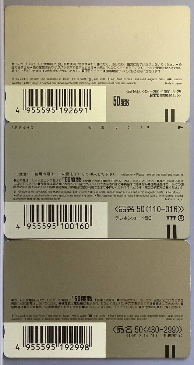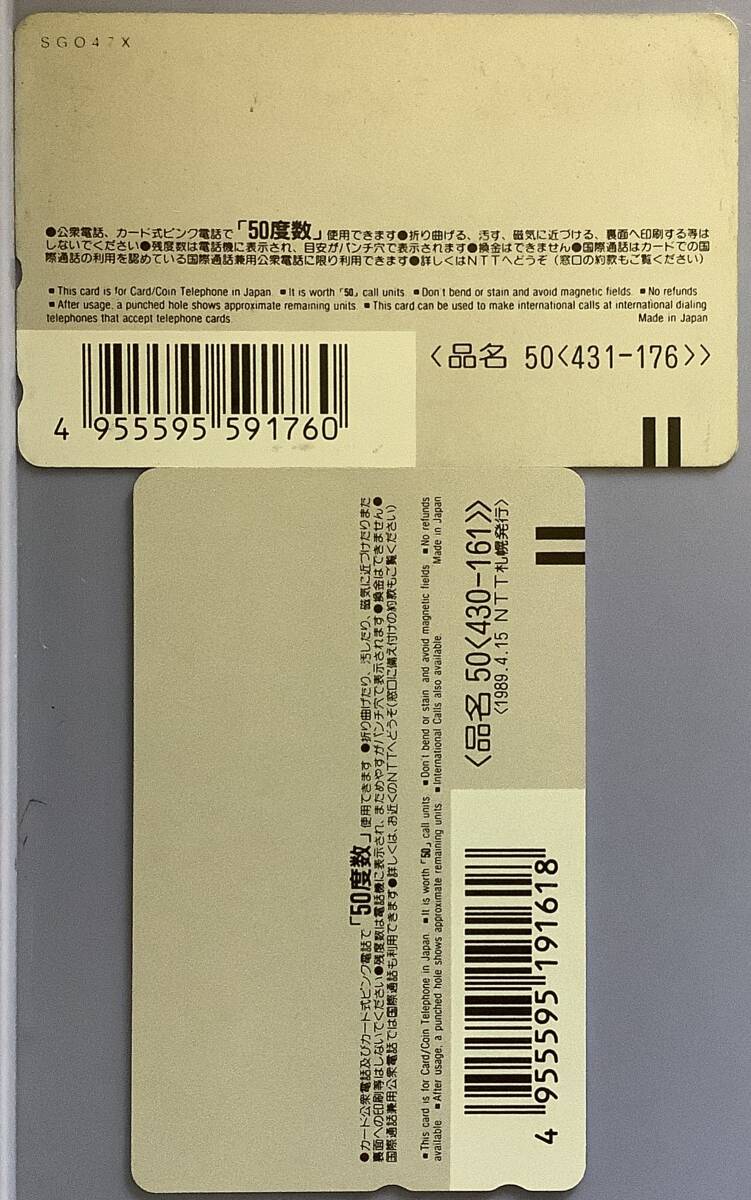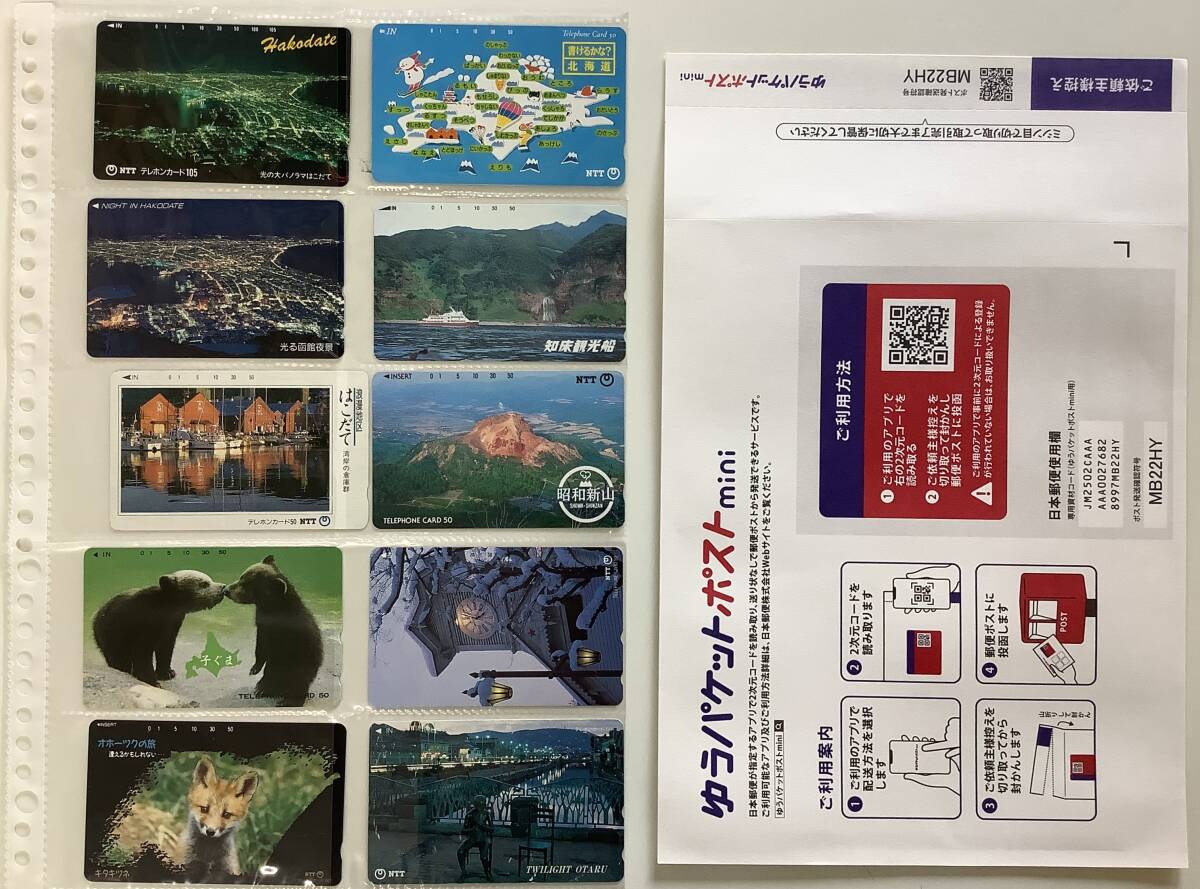 今回は、ご寄附いただいたものから、北海道関係の未使用テレカを出品させていただきました。50度数9枚、105度数1枚、計555度数です。しっかり袋に入ったままご寄附いただい良品もありますが、劣化・色褪せた感じのものもありますので、それぞれ裏面写真を付けました。写真のように名刺ファイルに入れ、折って封入してあります。