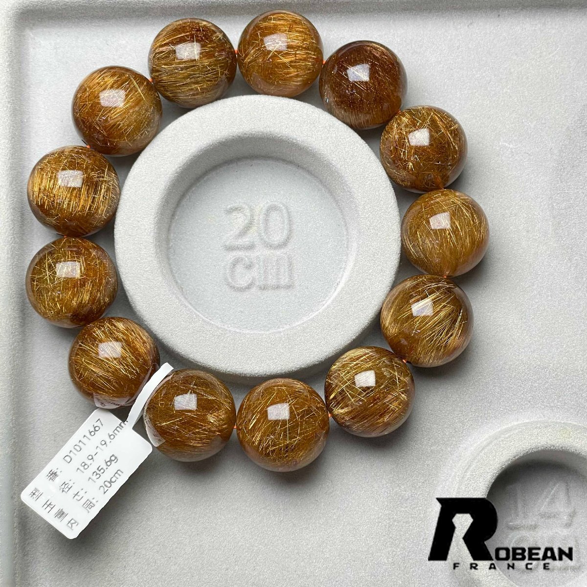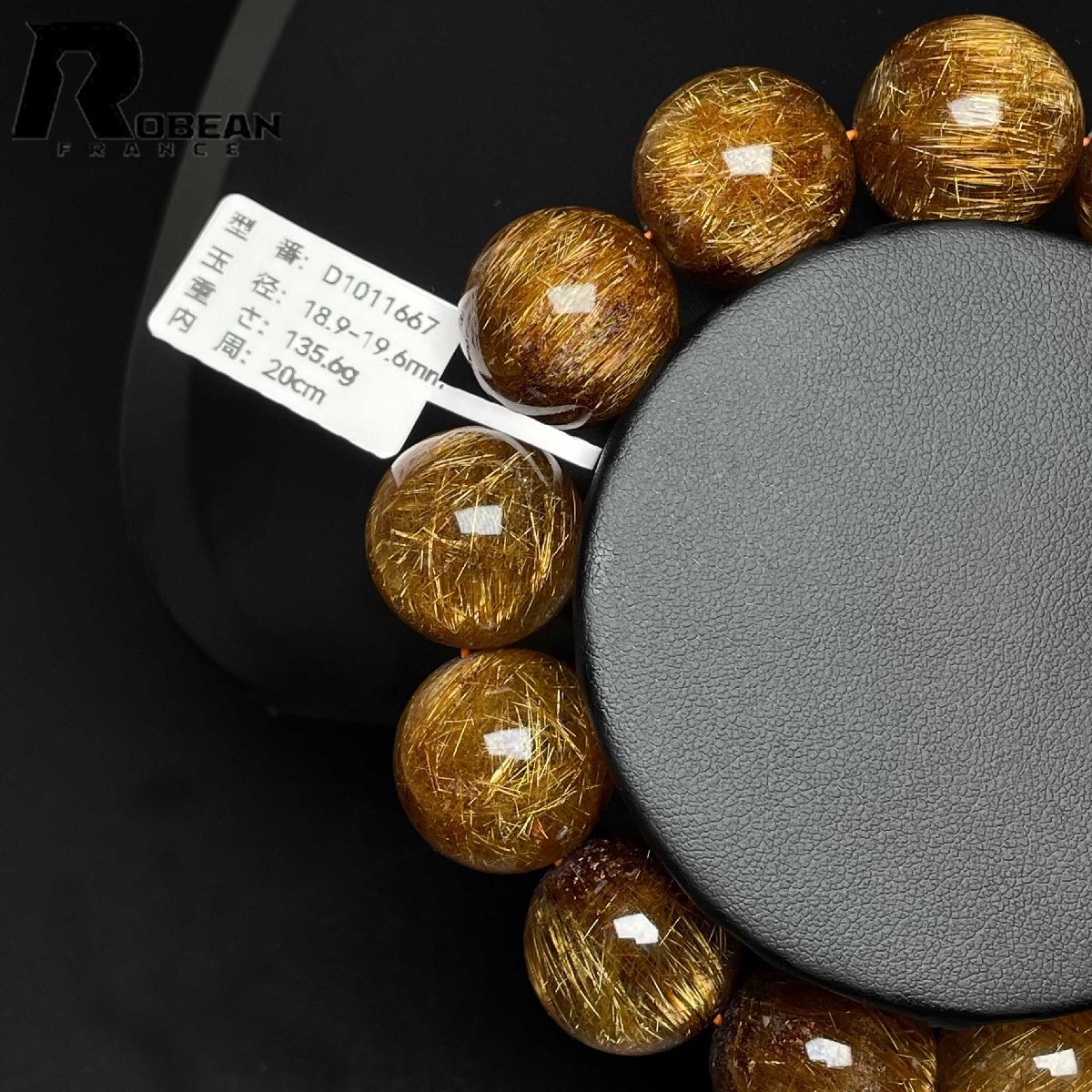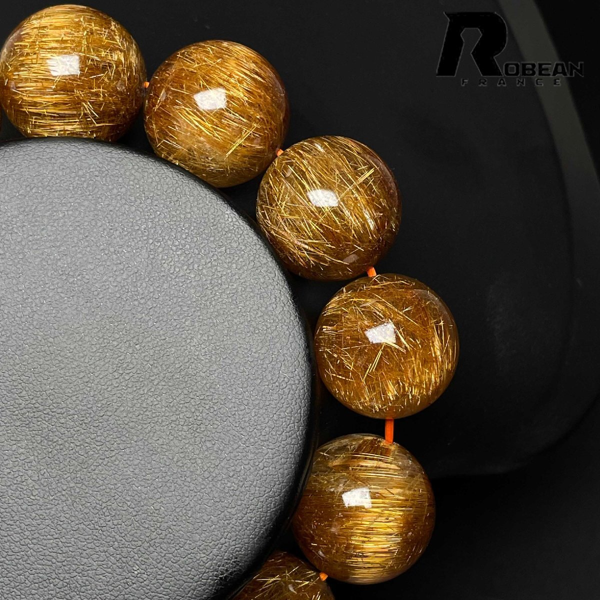 高級 EU製 定価250万円★ROBEAN・銅髪ルチルクォーツ★ブレスレット パワーストーン 天然石 綺麗 金運 お守り 18.9-19.6mm D1011667