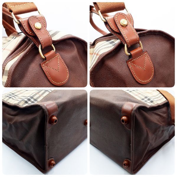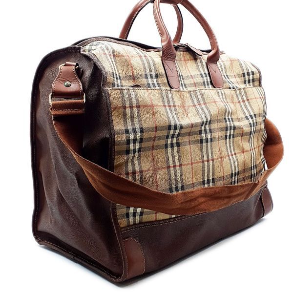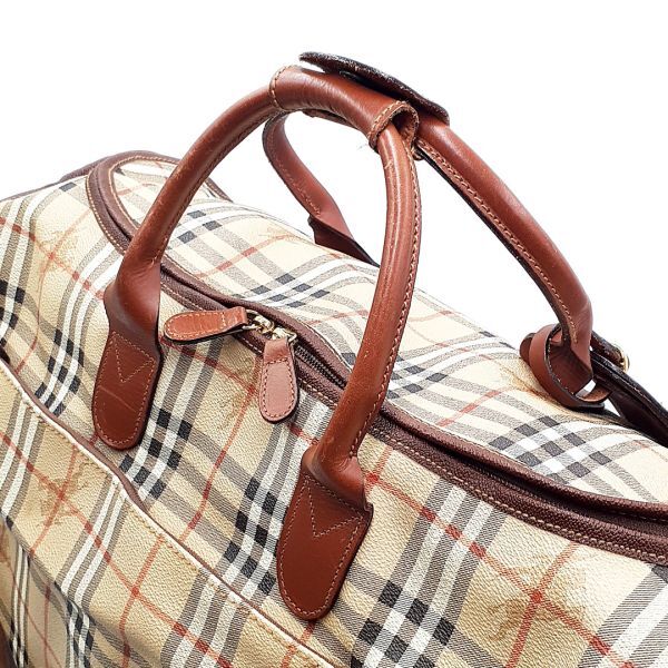 ◆美品◆ バーバリーズ Burberrys ボストンバッグ ゴルフバッグ 旅行カバン トラベルバッグ ハンドバッグ ショルダーバッグ 鞄 2WAY ノバチェック シャドーホース シャドウホース PVC レザー ベージュ系 茶 ブラウン系 レディース メンズ