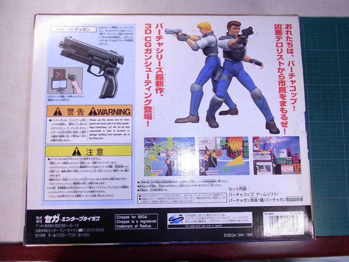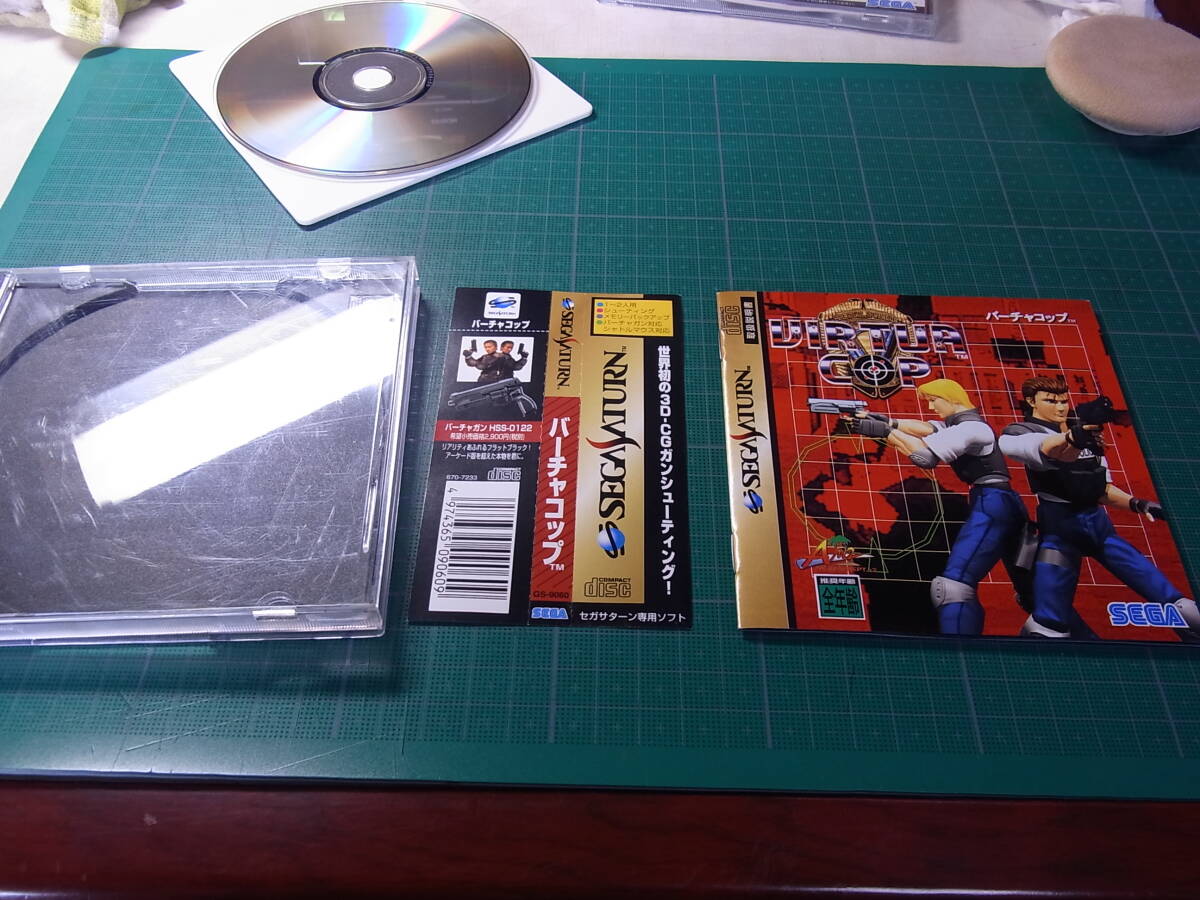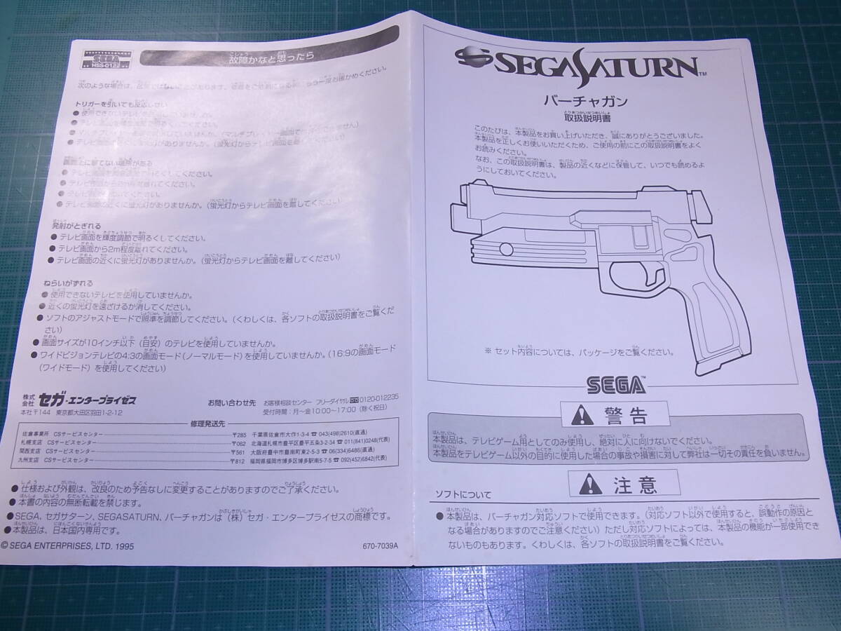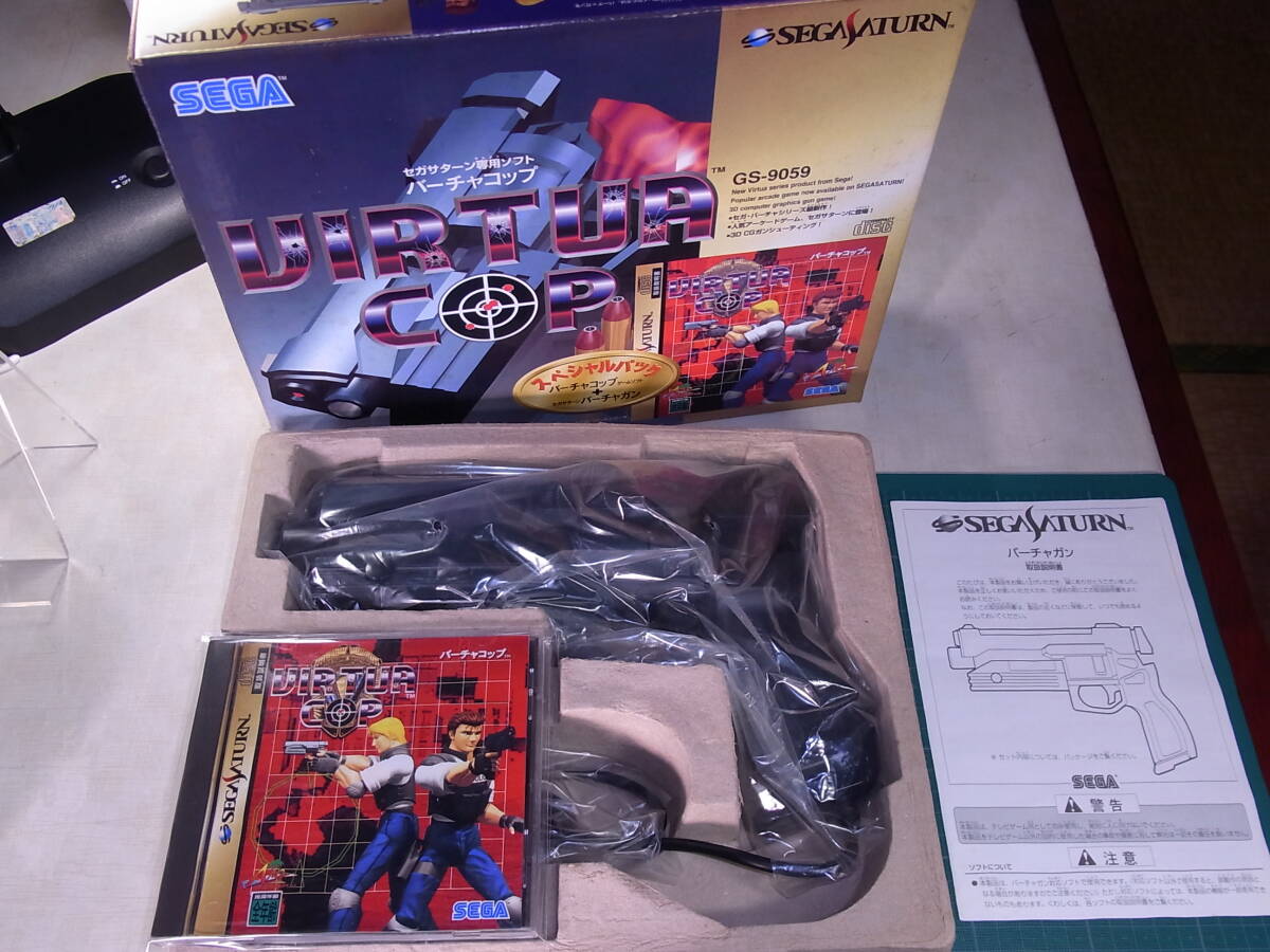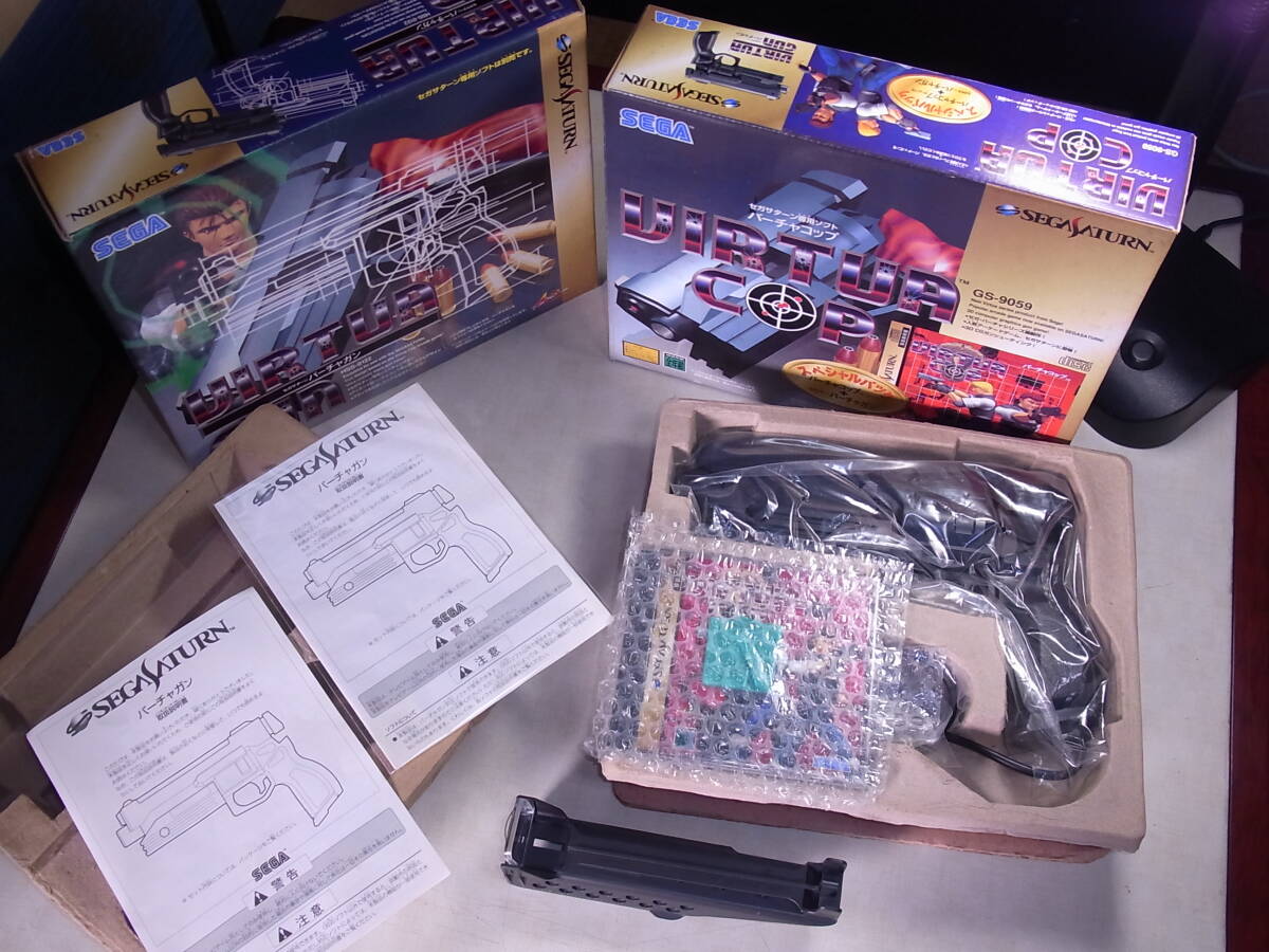 | ■セガサターン【バーチャコップ スペシャルパック バーチャガン同梱版】(GS-9059) と、配送サイズが80サイズとなってしまう為に、おまけで 「バーチャガン」の空き箱と、[TANIO.KOBA] VG SCREEN MOUNT-SIGHTをお付けしています。 ---------------------------------------------------------------------- ■セガサターン【バーチャコップ スペシャルパック バーチャガン同梱版】(GS-9059) ワンオーナー品で購入当時の付属品は全て揃っています。 外箱、内箱等も揃っています。 外箱は経年による汚れとシミは見受けられます。 ■セガサターン「バーチャガン」コントローラー マウントサイトを装着した影響もあり本体に薄い傷などはあります。 取説、経年汚れと使用感あります。 トリガーとサイドボタンは正常に動作します。(ゲームスタートやリロードで確認) ブラウン管を処分済みの為に、完全に動作確認は出来ていませんが、恐らく故障はしていないと思います。 ■セガサターンゲームソフト「バーチャコップ」 帯、取扱説明書、SOFT INFORMATION VOL.4(ミニチラシ)付きます。(ハガキは恐らく元から封入されていません。) ディスク裏面端に1ヶ所傷がついてしまっていました。(写真参照) 取説と帯に若干の使用感あります。 ジュエルケース、割れなどはありませんが細かい傷あります。 サターン実機にて動作確認済み、問題ありません。 ■おまけ 1・「バーチャガン」単品の空き箱。 取説ありますが経年汚れあります。内箱もつきます。 2・[TANIO.KOBA] VG SCREEN MOUNT-SIGHT バーチャガンに取り付けられるオプション品です。 取付の外観は写真で確認ください。 外箱とオプションパーツは何処かへいって見当たらなかったため、お付け出来るのは写真の物のみとなります。 ■箱等は目立たない箇所で色落ちしないか確認した後で界面活性剤クリーナーやエタノールでクリーニング済み。 CD盤面はオーディオテクニカのCD洗浄液でクリーナー済み。 ■Googleドライブに大きい画像と追加画像を載せて置きましたので参考にしてください。 ■送料無料おてがる配送(宅急便(EAZY) 80サイズ)にて発送予定です。 配送方法の種類や補償などの詳細はリンク先にてご確認下さい。 | ||