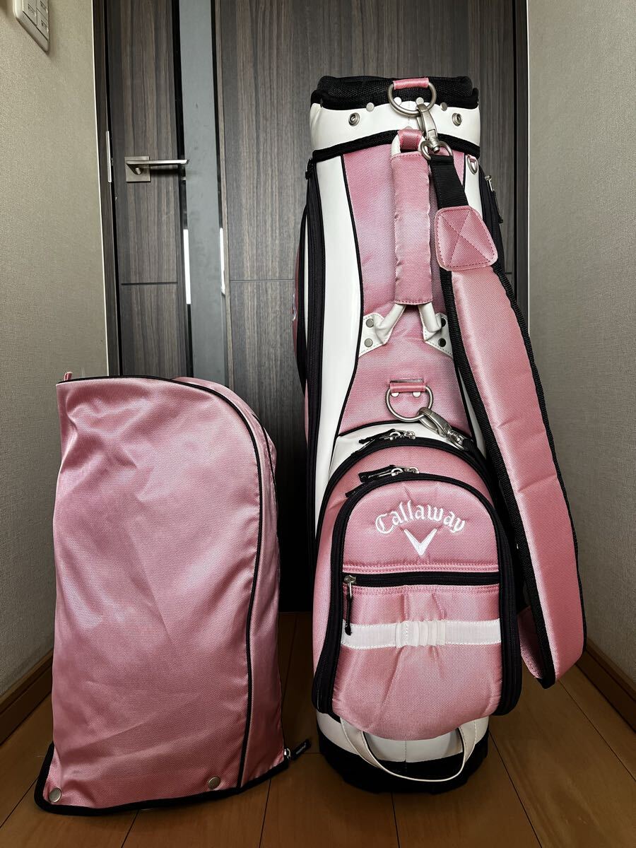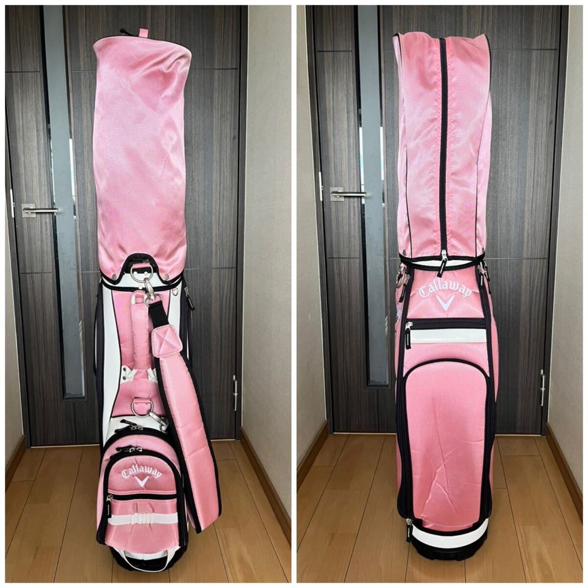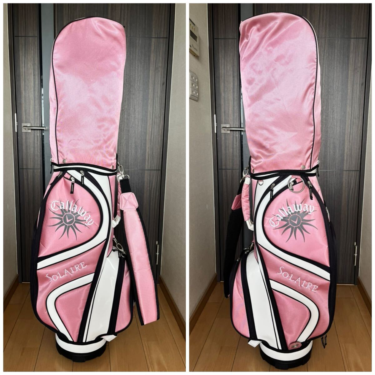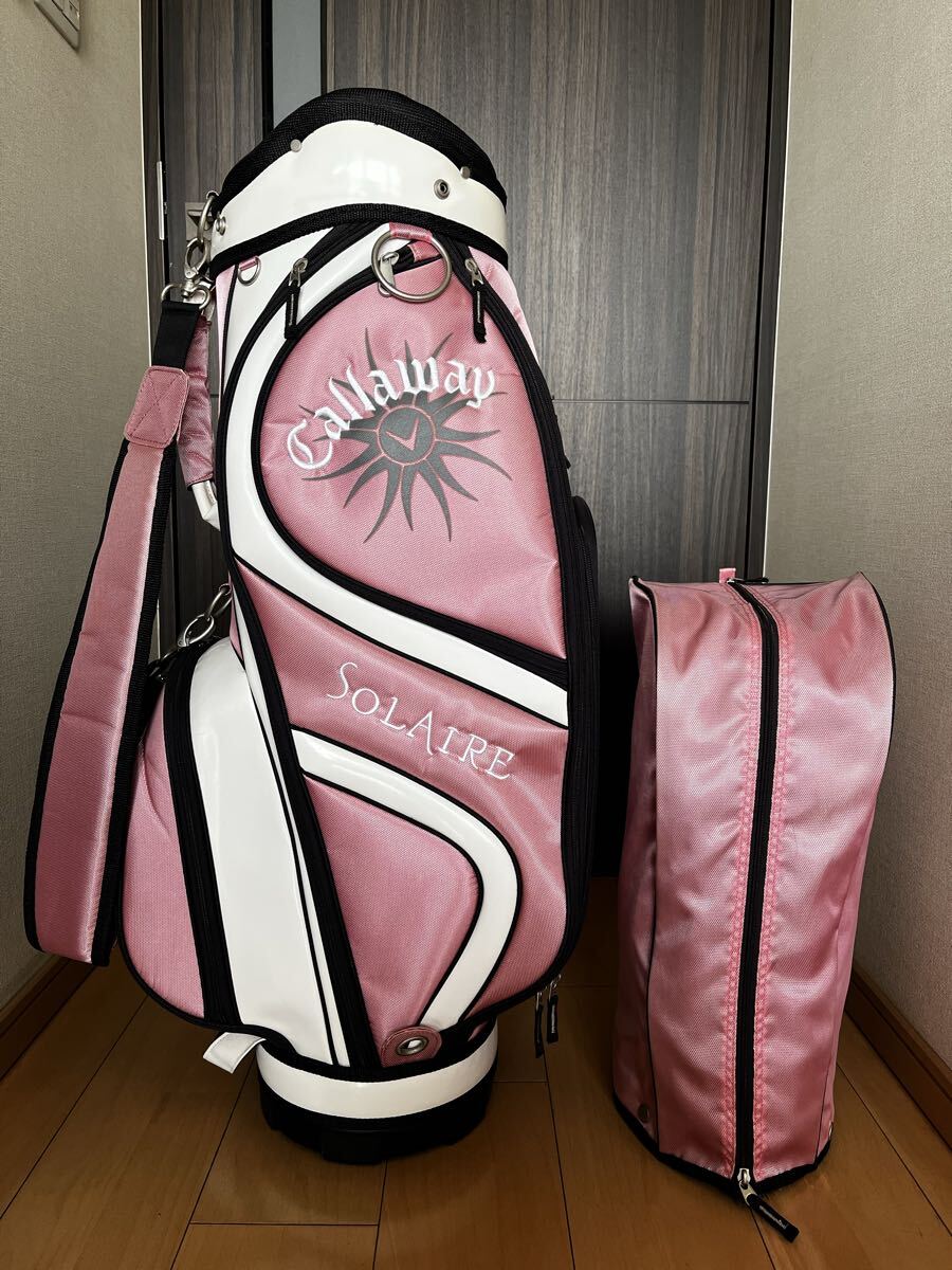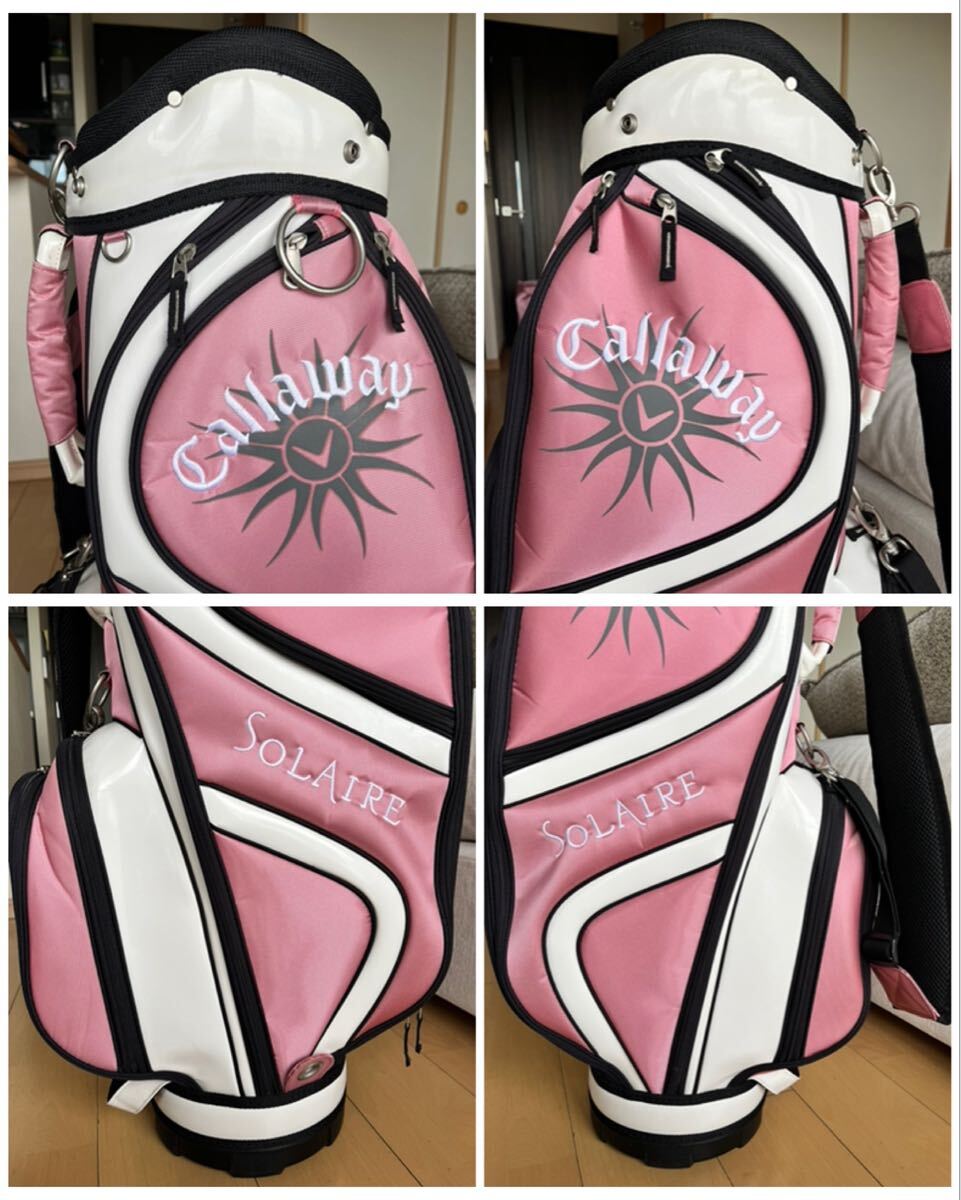 女性の方から絶大な支持を得ている大人気のcallaway solaireの淡いピンクが上品で可愛いキャディーバックになります。