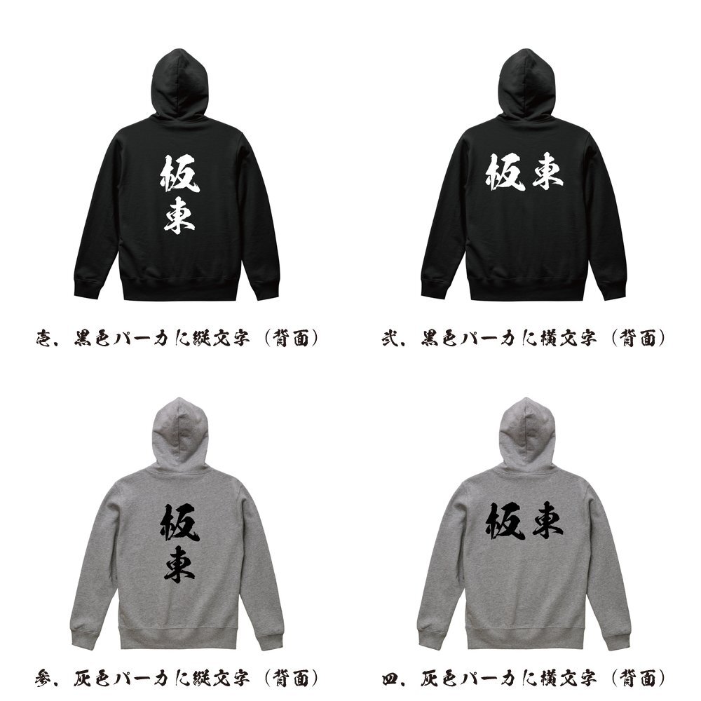 板東 書道家が書く デザイン フルジップ パーカ 【 名字 】 メンズ レディース キッズ