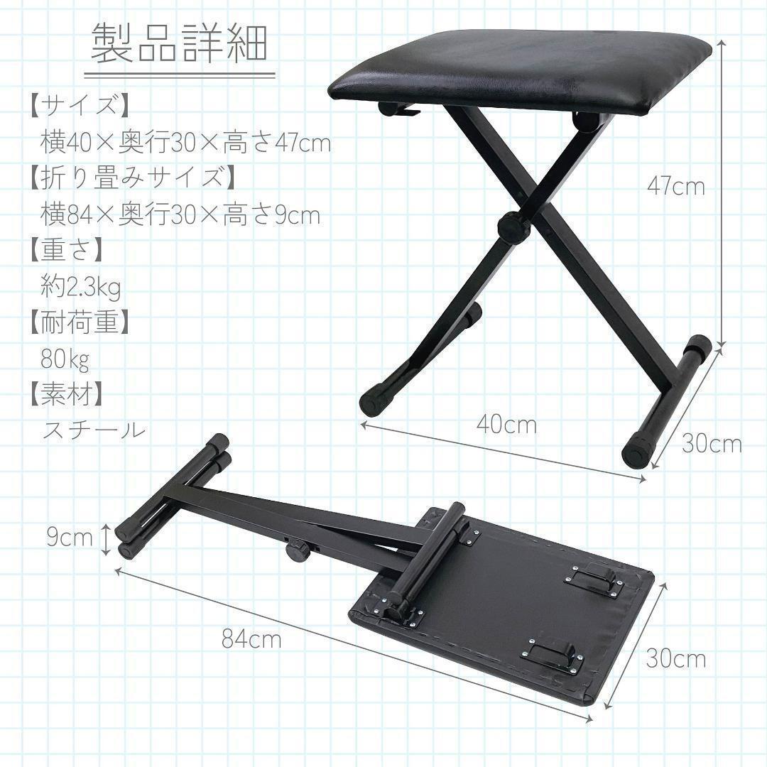 【新品即決】キーボードベンチ ピアノ椅子 折りたたみ 軽量 安定 高さ調節 3段階(白)