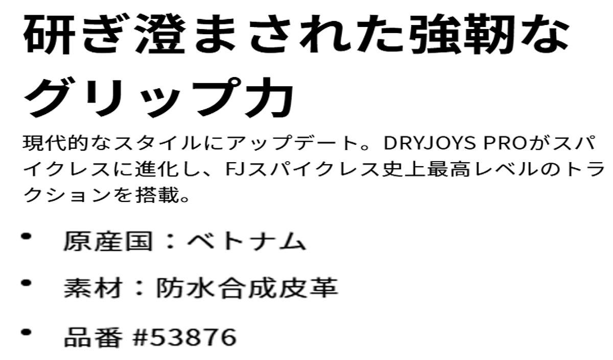 新品■2025.11■フットジョイ■ドライジョイズ プロ ボア スパイクレス■#53876■ホワイト/ブラック■27.0CM:WIDE■強靭なグリップ力■