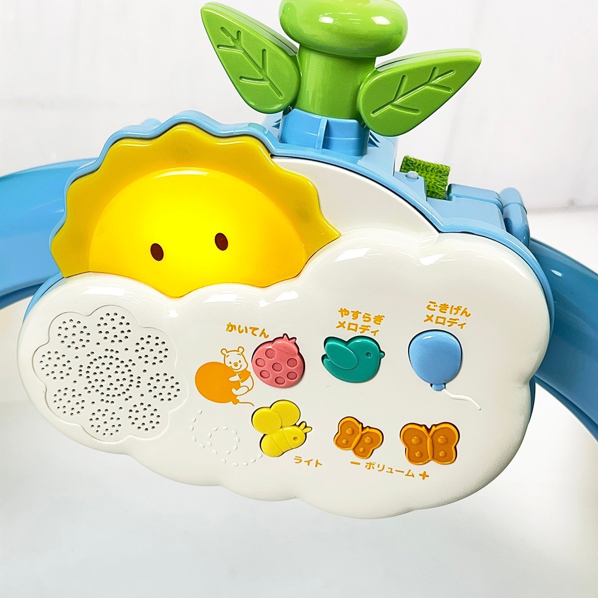 やすらぎメロディボタン、回転、ライトの点灯、音量調整などの動作は確認しています。