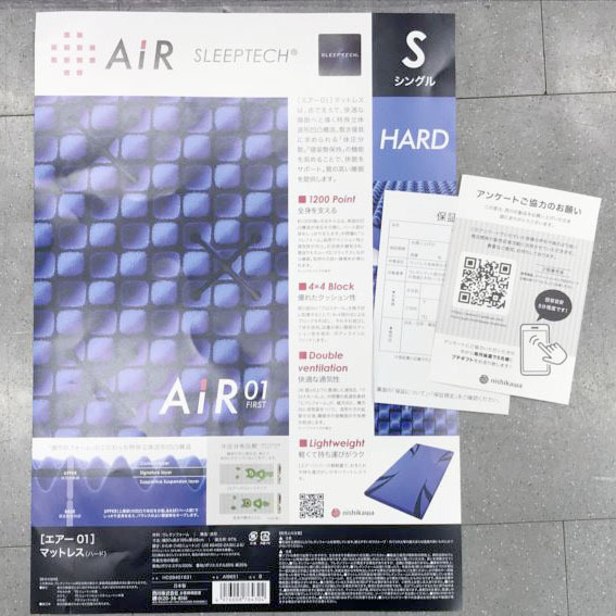 【商品特長】 ◆眠りを深化させる 特殊立体波形凹凸構造 UPPER(上層部)の凹凸で体圧を分散。BASE(ベース部)でしっかり全身を支え、バランスのよい寝姿勢を保持します。 ◆1200 Point 全身を支える 約1200個の点からなる、表面の凹凸構造が体圧を分散し、ベース部が体をしっかり支えます。 中間層の新ウレタンフォーム「レフレフォーム」採用でクッション性と通気性が向上。 圧迫感が緩和され、寝返りもスムーズにリラックスしながら睡眠。気持ちの良い寝覚めが得られます。 ◆4×4 Block 優れたクッション性 肩口部分に「クロスホール」を格子状に配置することで、4×4個の点によるブロックを形成し、 それぞれ独立して体を保持。加重の高い肩部のクッション性を高め、ボディラインにフィットします。 ◆Double ventilation 快適な通気性 上下に貫通した通気孔「クロスホール」と、中間層の高通気新素材「レフレフォーム」が、縦方向と、 横方向に通気路をつくり、湿気や汗の拡散を促進。睡眠中の接触面の不快感を軽減します。 ◆Lightweight 軽くて持ち運びがラク [エアー]シリーズ最軽量で、収納時やお手入れの際の持ち運びがしやすいマットレスです。 | |||||||||||||||