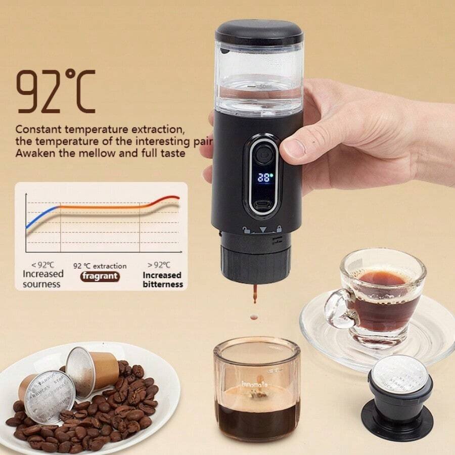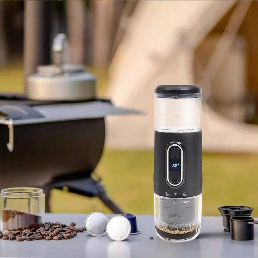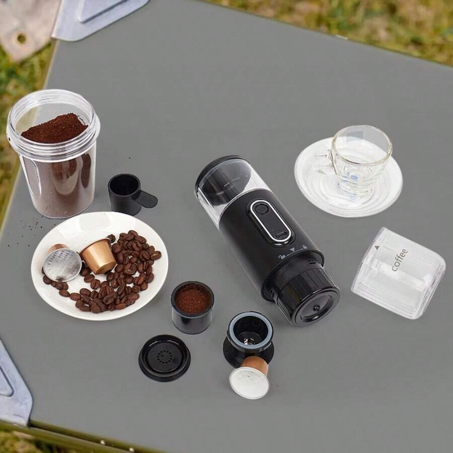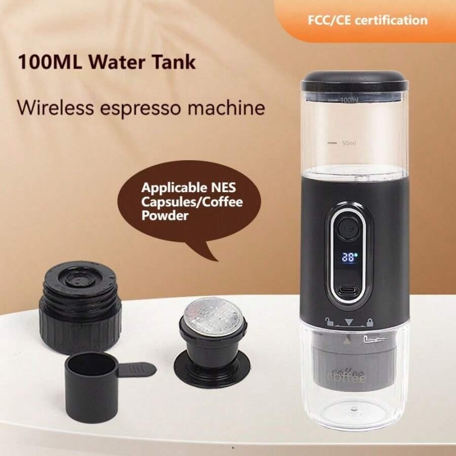 エスプレッソマシン ワイヤレス ポータブル コーヒーマシン カプセル/粉末両用 旅行/出張/オフィス/家庭用 大容量バッテリー 黒色 800